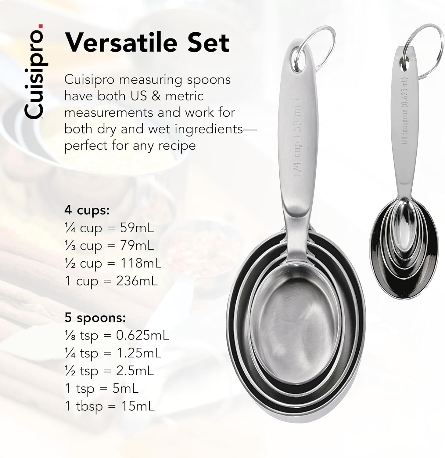 - Comprehensive Measuring Set: Includes four oval-shaped measuring cups (1/4, 1/3, 1/2, and 1 cup) and five oval-shaped measuring spoons (1/8, 1/4, 1/2, 1 tsp, and 1 tbsp), catering to a variety of cooking and baking needs