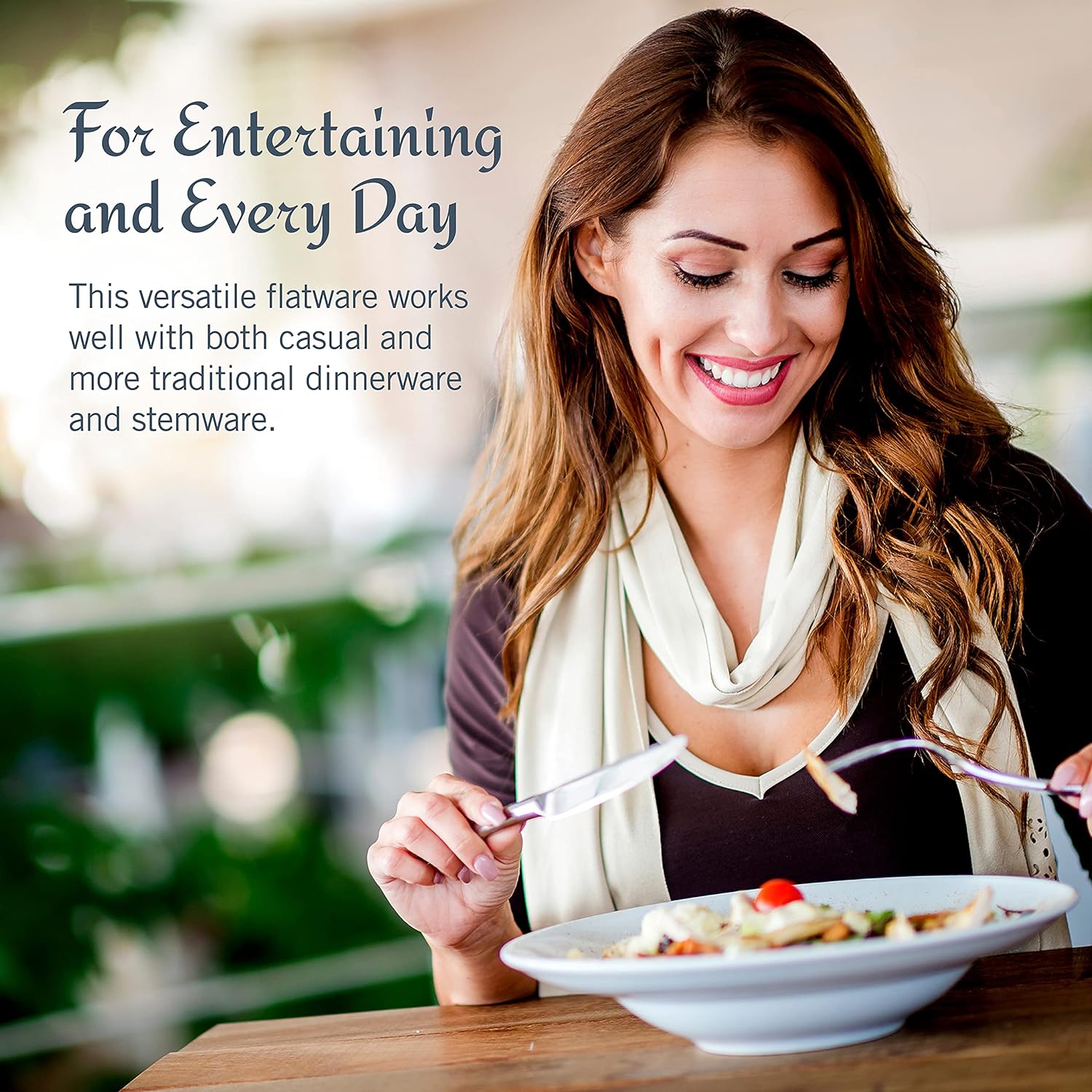 - TIMELESS DESIGN: elegant flatware features flaring handles and subtle bands that highlight the narrow necks and wide tips
