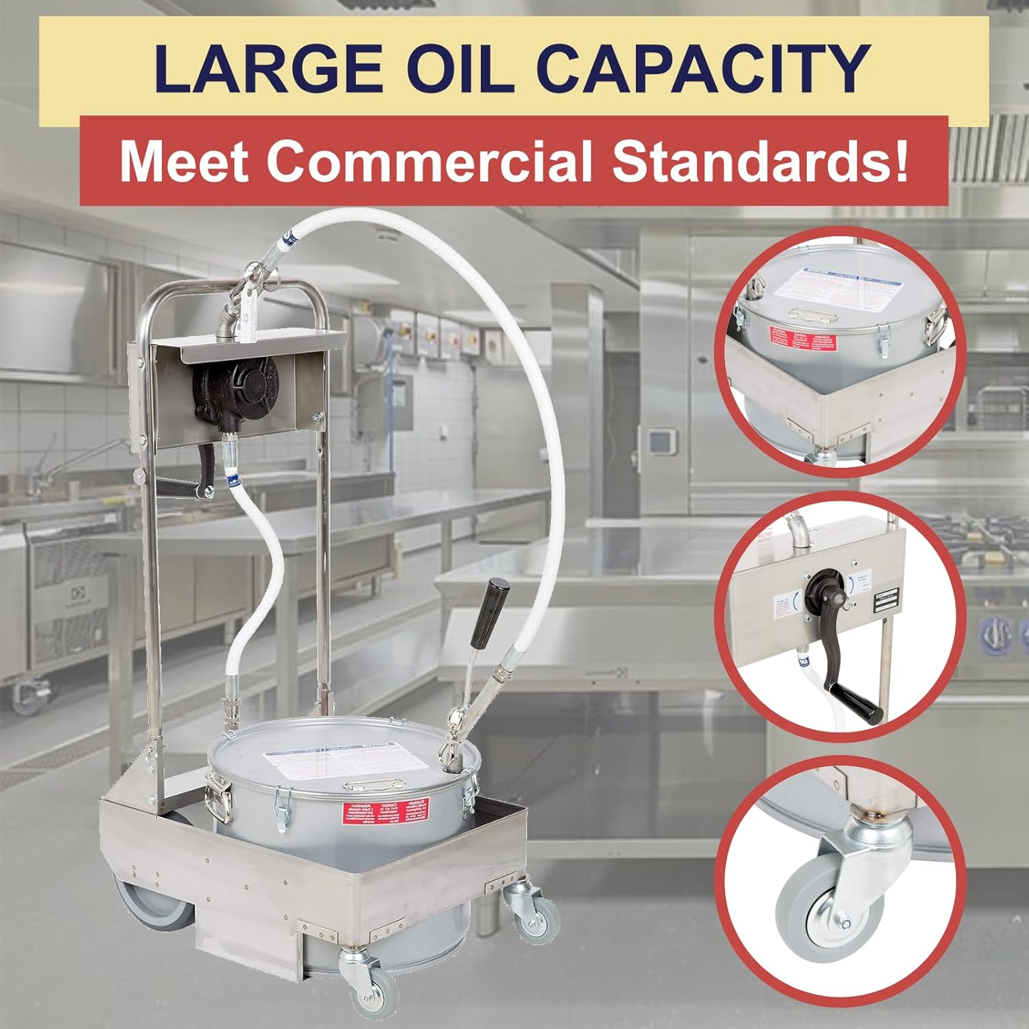 - PORTABLE & EFFICIENT HAND-OPERATED OIL FILTRATION SYSTEM – The MirOil 55HD is engineered for maximum convenience in busy commercial kitchens, featuring a lightweight frame and heavy-duty wheels for easy transport between fryers. This manual filtration system allows operators to clean used oil quickly and efficiently, extending oil life and maintaining optimal food quality. Ideal for restaurants, food trucks, and catering operations, it delivers consistent performance while reducing oil waste and cutting operational costs.