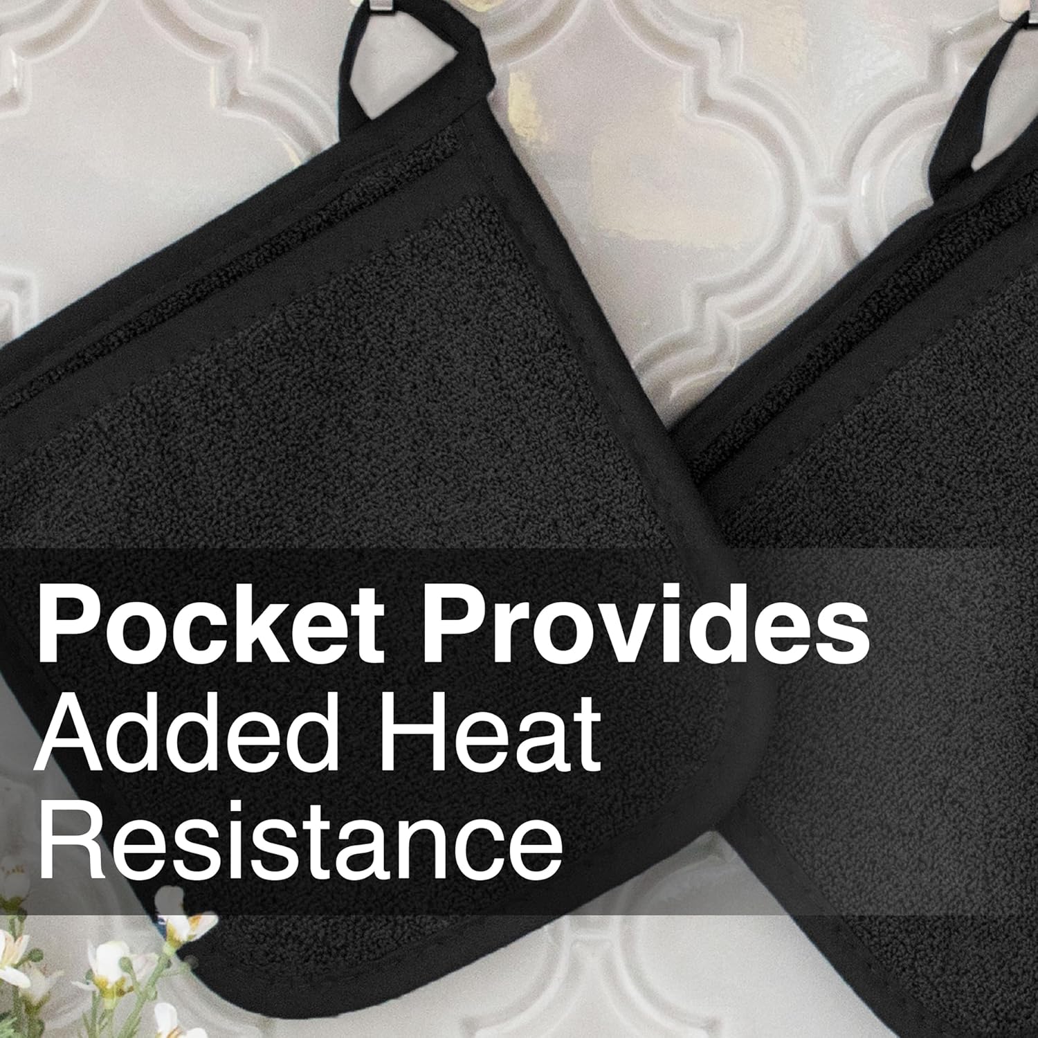 RITZ Terry Pocket Mitt & Hot Pad: Unparalleled Heat Resistant, Durable 100% Cotton – Ergonomically Designed for Optimal Grip – Easy-Care Machine Washable – 2-Pack, Black