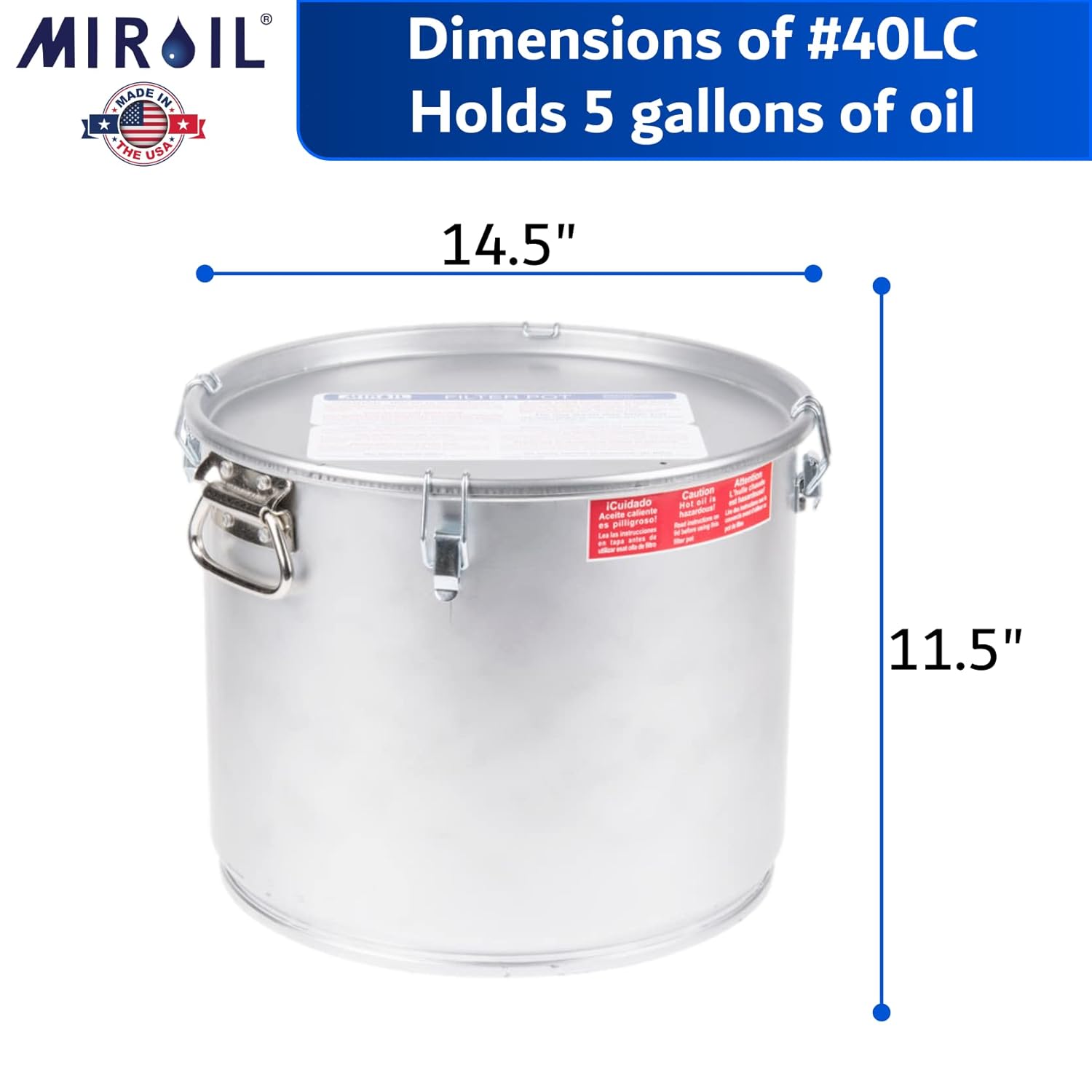 MirOil 5 Gallon Oil Grease Bucket & Filter Pot, USA Made Deep Fryer Grease Bucket Pot with Lid Lock & Lock Clip, 35Lb. Low Profile Container To Fit Under Drain Valves, Filtering Hot Cooking Oil - 40L