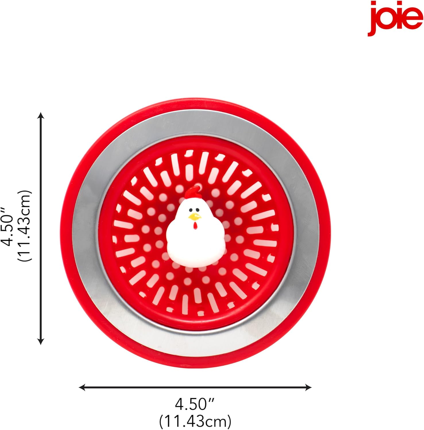 - FLEXIBLE FIT: Joie's Doodle Doo Sink Strainer fits all standard size sink drains and measures 4.5 inches across. Brighten up the task of washing dishes and save money on plumbers by avoiding clogs!