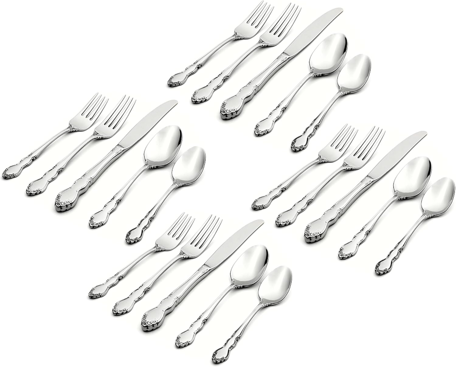 Oneida 2766020AL20 Dover 20-Piece Fine Flatware Set, Service For 4, Mirror Finish