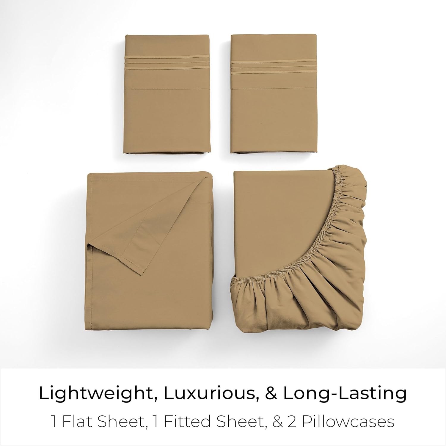 Mellanni Full Sheets Set - 4 PC Iconic Collection Bedding - Hotel Luxury, Extra Soft, Cooling Bed Sheets - Wrinkle, Fade, Stain Resistant (Full, Gold)