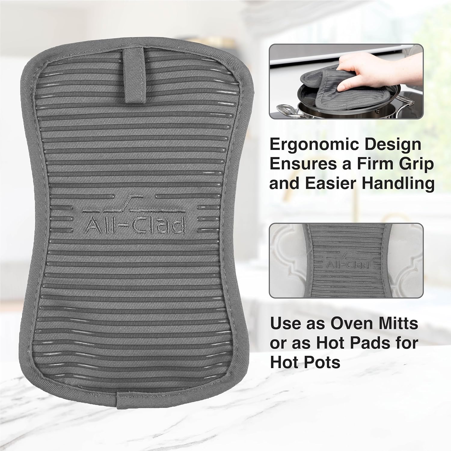 All-Clad Premium Pot Holder & Hot Pad: Heat Resistant to 500 Degrees - 100% Cotton, 10""x6.25"" Hot Pad for Kitchen and Barbeque, (1-Pack), Pewter