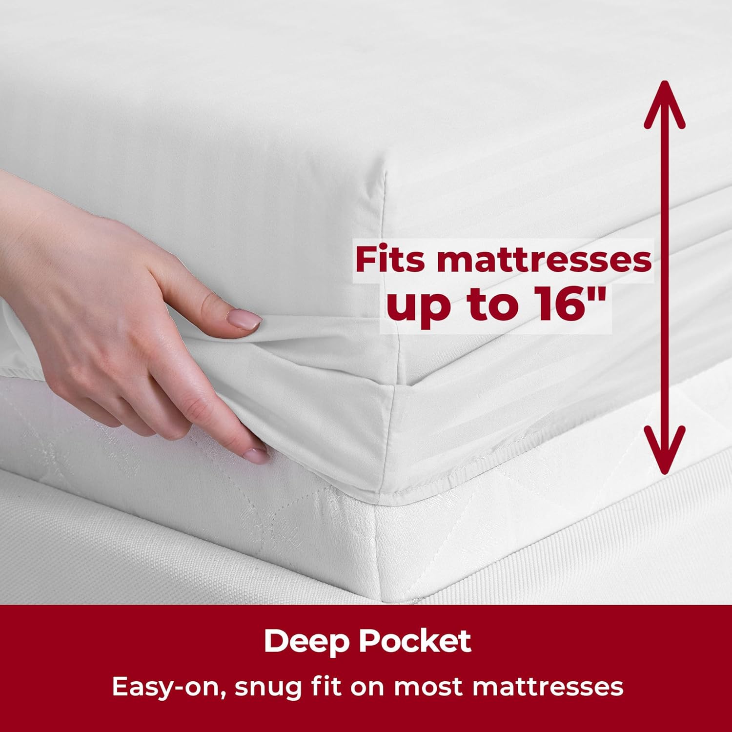 - Perfect Fit & Certified Safe - Deep pockets fit mattresses up to 16" deep, making them ideal for memory foam toppers, air mattresses, and more. A sewn-in elastic band ensures a snug, secure fit. OEKO-TEX(R) STANDARD 100 certified (22.HUS.40891, Hohenstein), tested for over 1,000 harmful substances for your peace of mind.