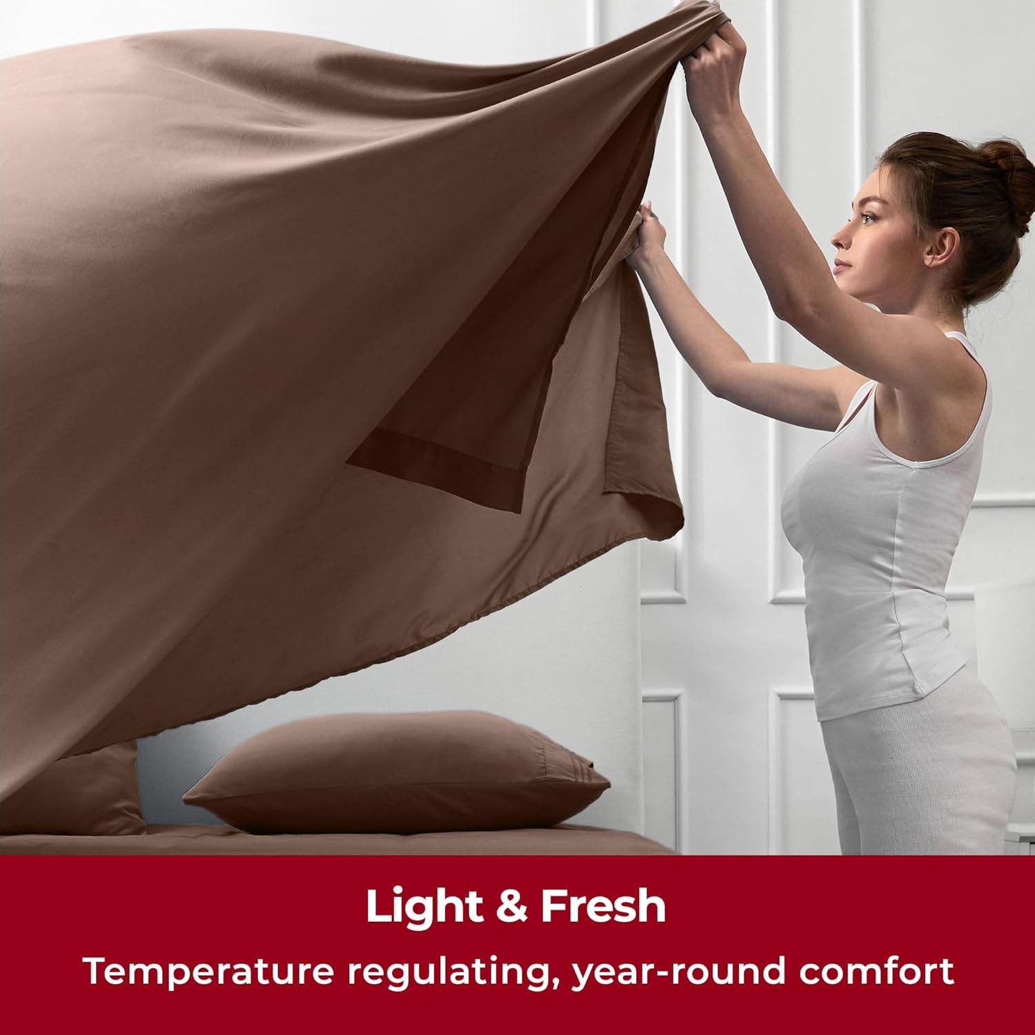 Mellanni Twin XL Sheets Set - 3 PC Iconic Collection Bedding - Hotel Luxury, Extra Soft, Cooling Bed Sheets - Wrinkle, Fade, Stain Resistant (Twin Extra Long, Brown)