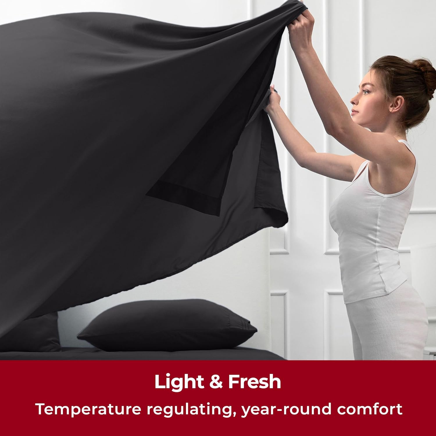 - Complete 3-Piece Twin XL Bedding Set - Includes 1 Fitted Sheet (39"x80"x16"), 1 Flat Sheet (66"x102"), & 1 Pillowcase (20"x30") - all crafted from double-brushed microfiber for an ultra-soft feel. Temperature-regulating to keep you cozy in winter and cool in summer.