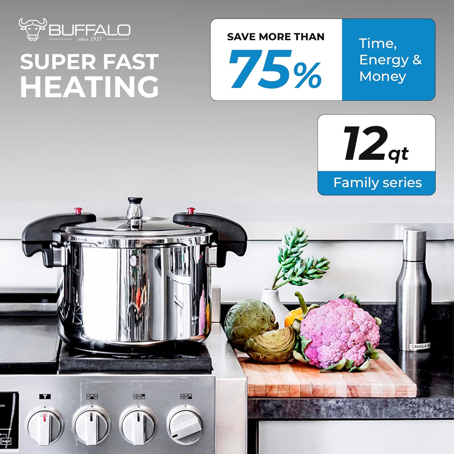Buffalo 12 Quart Pressure Cooker Stainless Steel - Large Canning Pot with Lid for Home, Commercial Use - Easy to Clean Induction Stove Top Pressure Canner, Can Cooker - SG Certificate QCP412