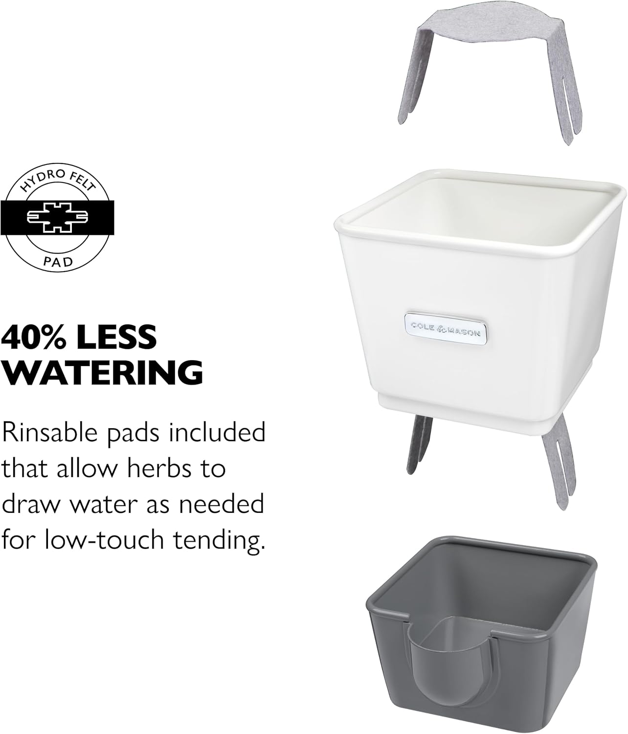 Cole & Mason Self-Water Herb Keeper - Potted Herb Saver with Hydro Pad & Pour Spout - Fresh Herb Keeper for Refrigerator - Herb Storage & Container