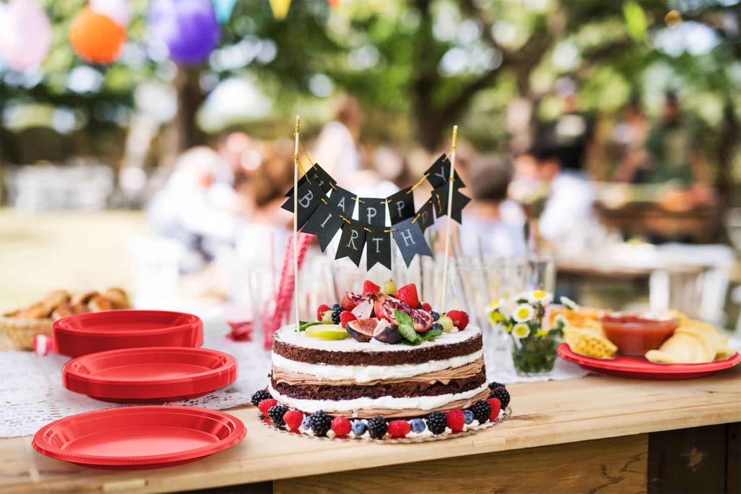- Health & Safety: Our Red plastic plate set is made with food safe materials, ensuring the health and safety of your guests. Whether it's for a birthday party or a picnic, you can trust that these disposable plastic plates meet the highest standards of hygiene, providing peace of mind for you and your loved ones.