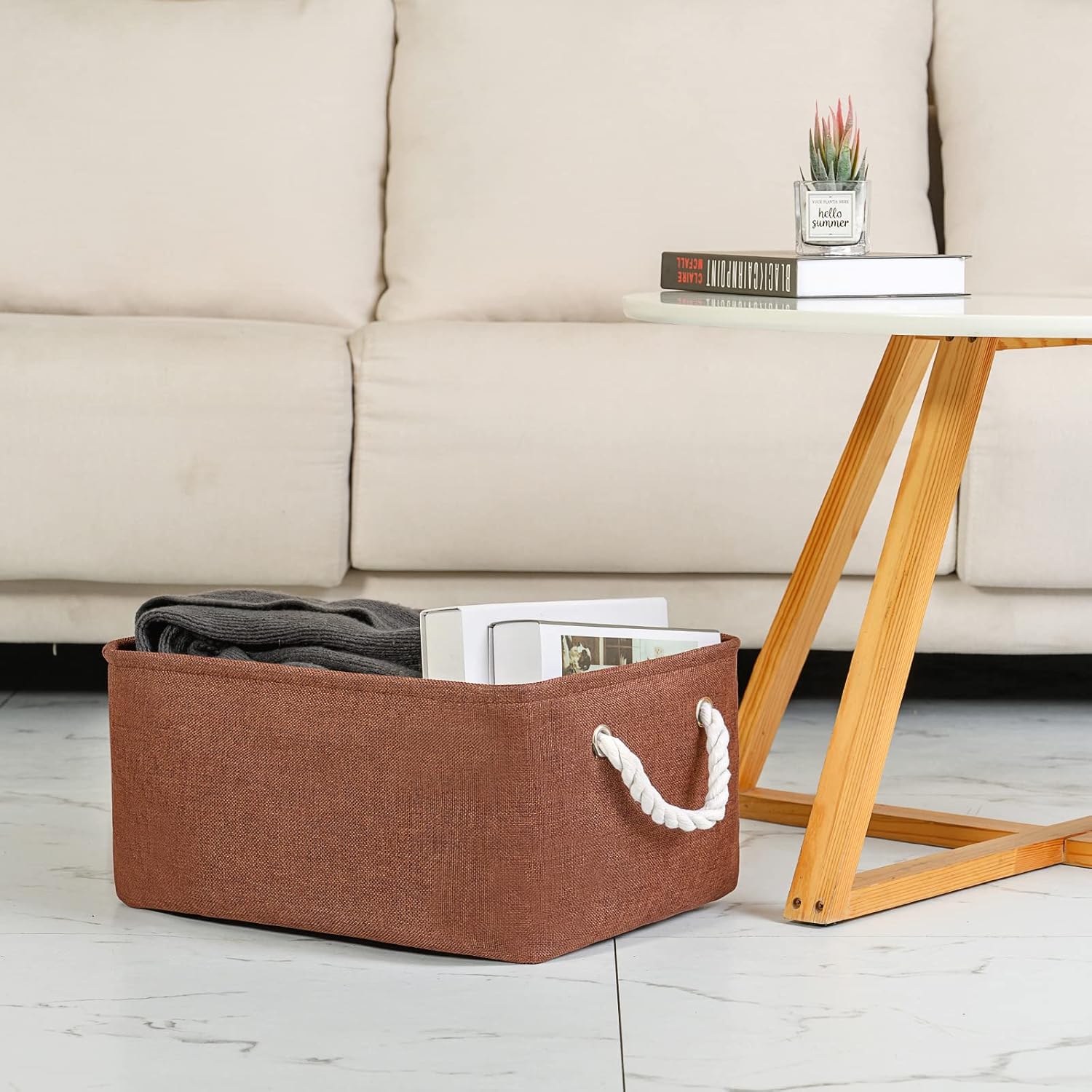 TheWarmHome Decorative Basket Rectangular Fabric Storage Bin Organizer Basket with Handles for Clothes Storage (Brown, Large-1Pack,15L*10.5W*8H)
