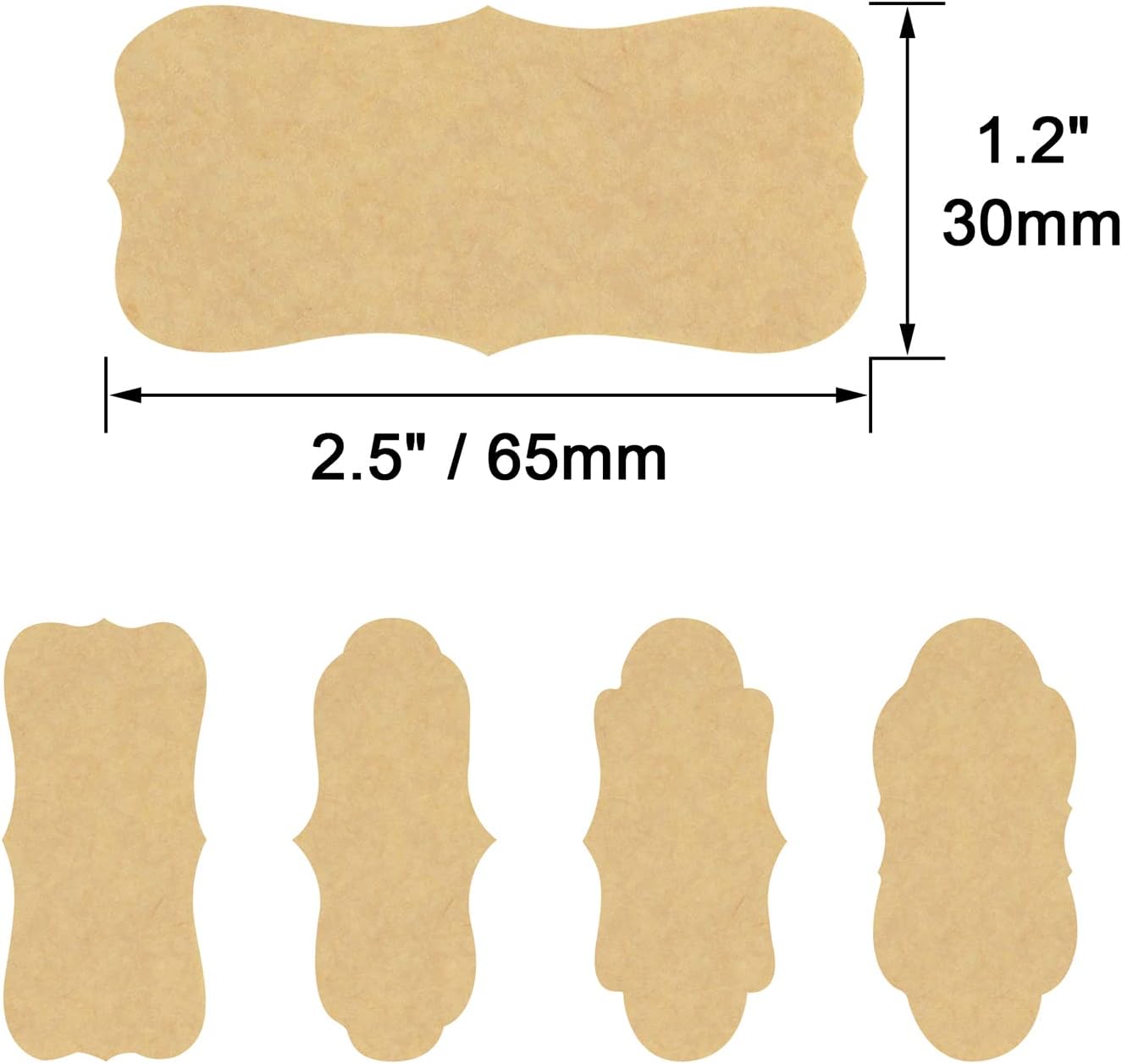 Wisdompro Fancy Shape Kraft Label Stickers, Self Adhesive Gift Tag Stickers Blank Writable Labels for Essential Oil Bottles, Jars, Food Containers (192 Pcs, Large)