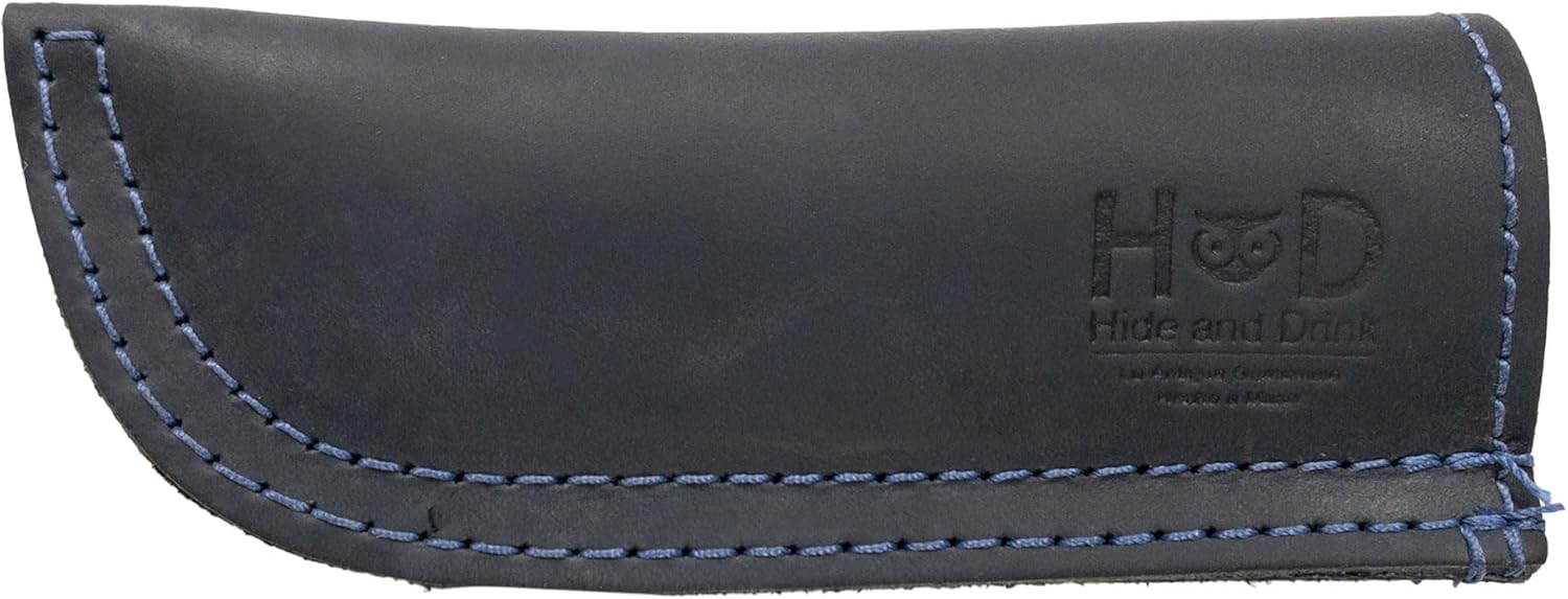 Hide & Drink, Full Grain Leather Hot Handle, Cast Iron Protector, Panhandle Potholder, Double Layered, Double Stitched, Slides On/Off Easily onto Metal Skillet Grips, Handmade, Slate Blue