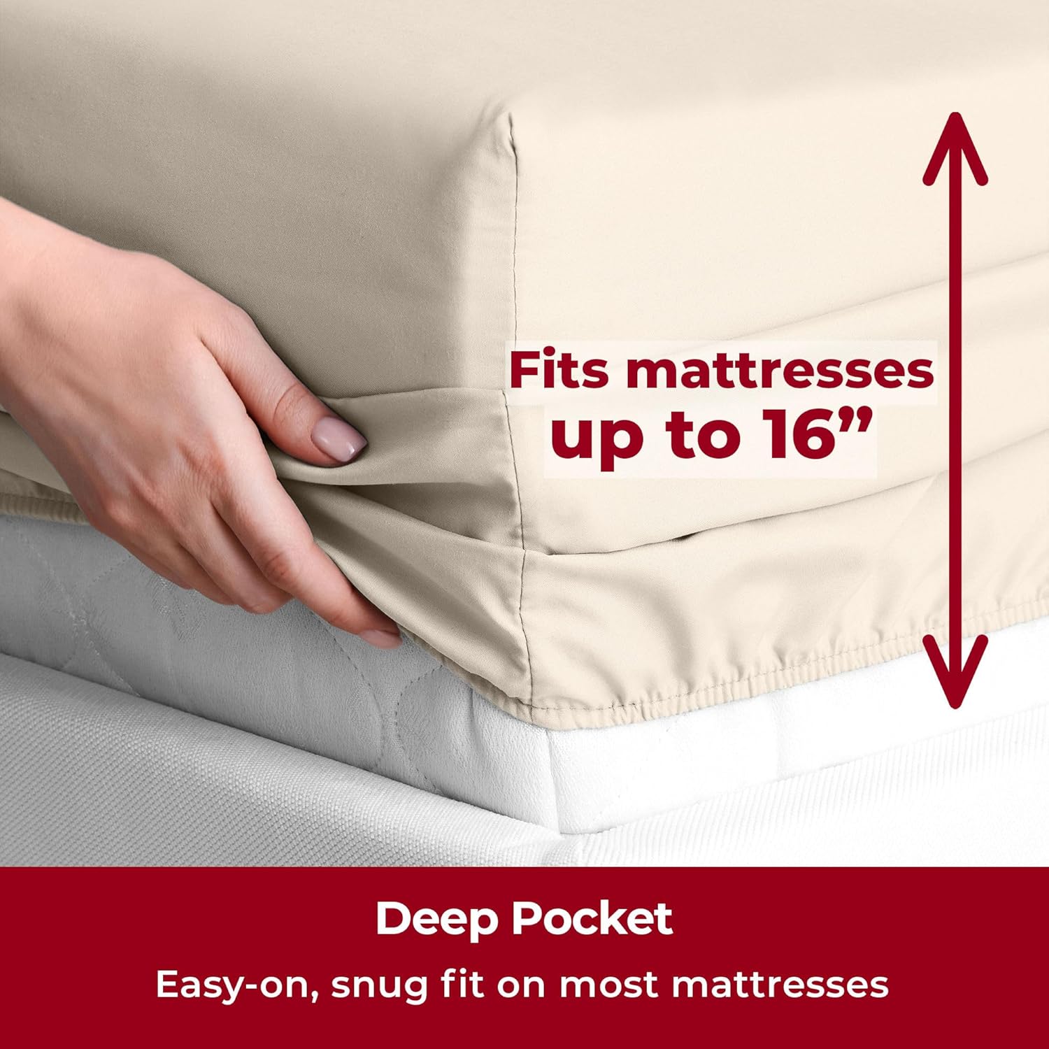 - Perfect Fit & Certified Safe - Deep pockets fit mattresses up to 16" deep, making them ideal for memory foam toppers, air mattresses, and more. A sewn-in elastic band ensures a snug, secure fit. OEKO-TEX(R) STANDARD 100 certified (22.HUS.40891, Hohenstein), tested for over 1,000 harmful substances for your peace of mind.