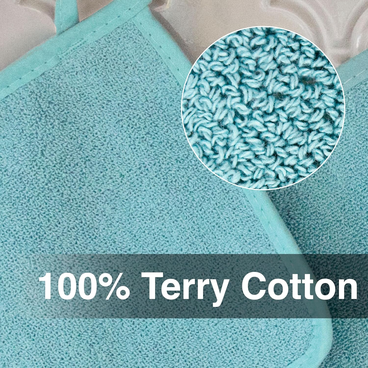 RITZ Terry Potholder & Hot Pad: Unparalleled Heat Resistant, Durable 100% Cotton – Ergonomically Designed for Optimal Grip – Easy-Care Machine Washable – 2-Pack, Dew