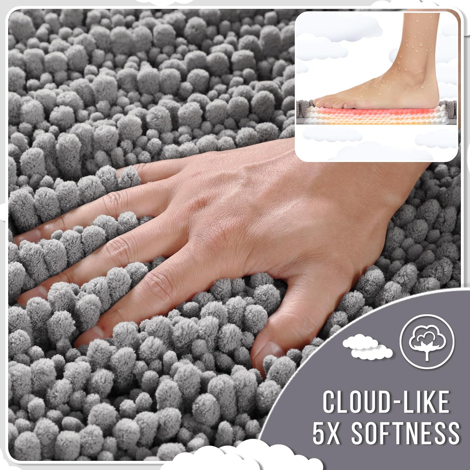 Yimobra Bathroom Rugs Non Slip Washable 32x20 Inch - Ultra Soft Absorbent Chenille Bath Mat, Quick Dry Shaggy Floor Carpet for Tub Shower, Gray Home Decor Accessories