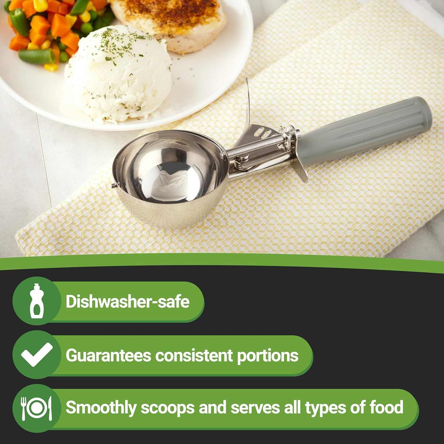 - EASY ORGANIZATION: This portion scoop has a gray handle for easy identification, minimizing confusion when handling an array of food items. Serve in style with this sophisticated tool!