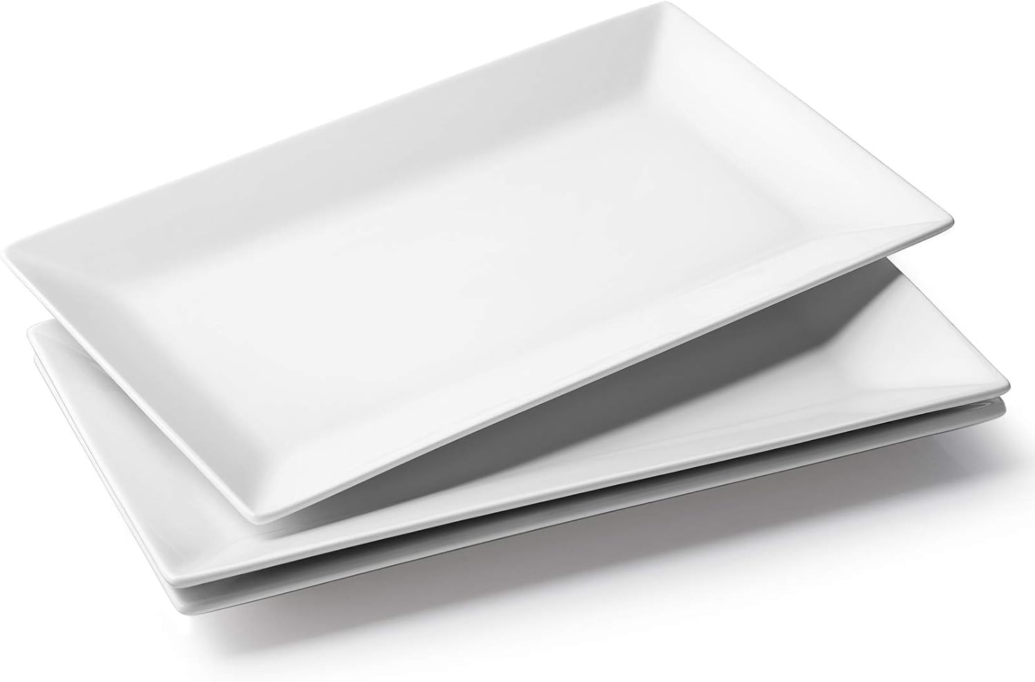 - MODERN DESIGN: Rectangle dinner plates are evenly glazed by professional workmanship, these oven-safe platters look gleaming-white, elegant, and modern, great to decorate any tableware and perfect to present and serve your thoughtfully crafted dishes.
