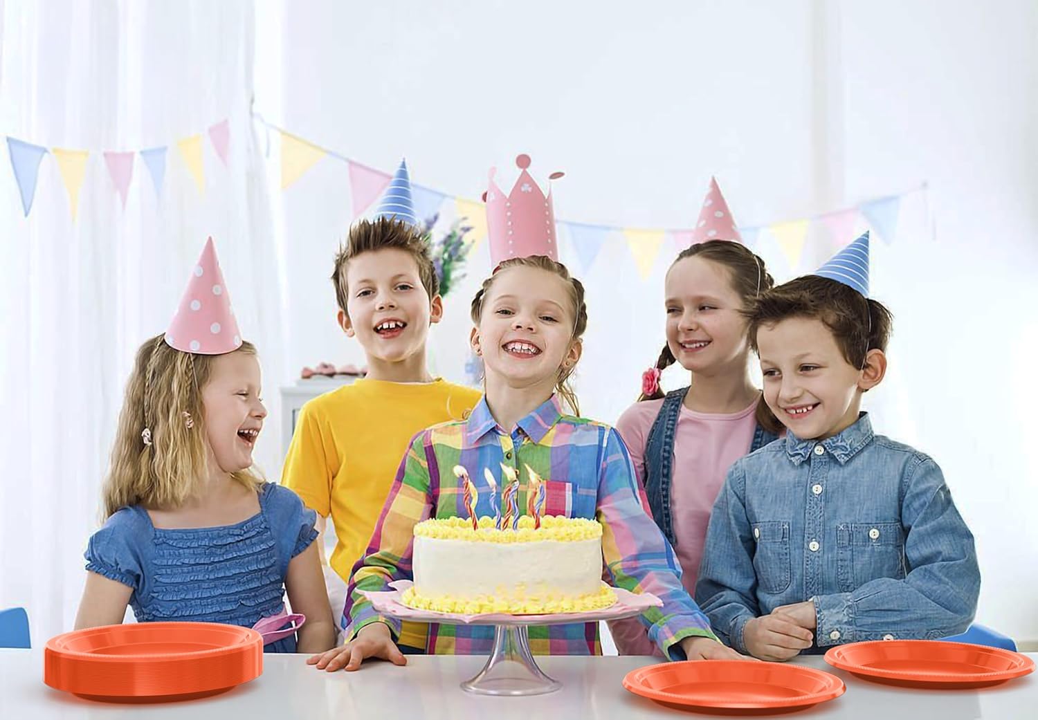 - Includes: Each pack comes with 100 Orange 9 inch dinner plates. These plates may be used as dinner plates or cake plate and also make a great use as picnic supplies. Having these will complete your plastic dinnerware collection.