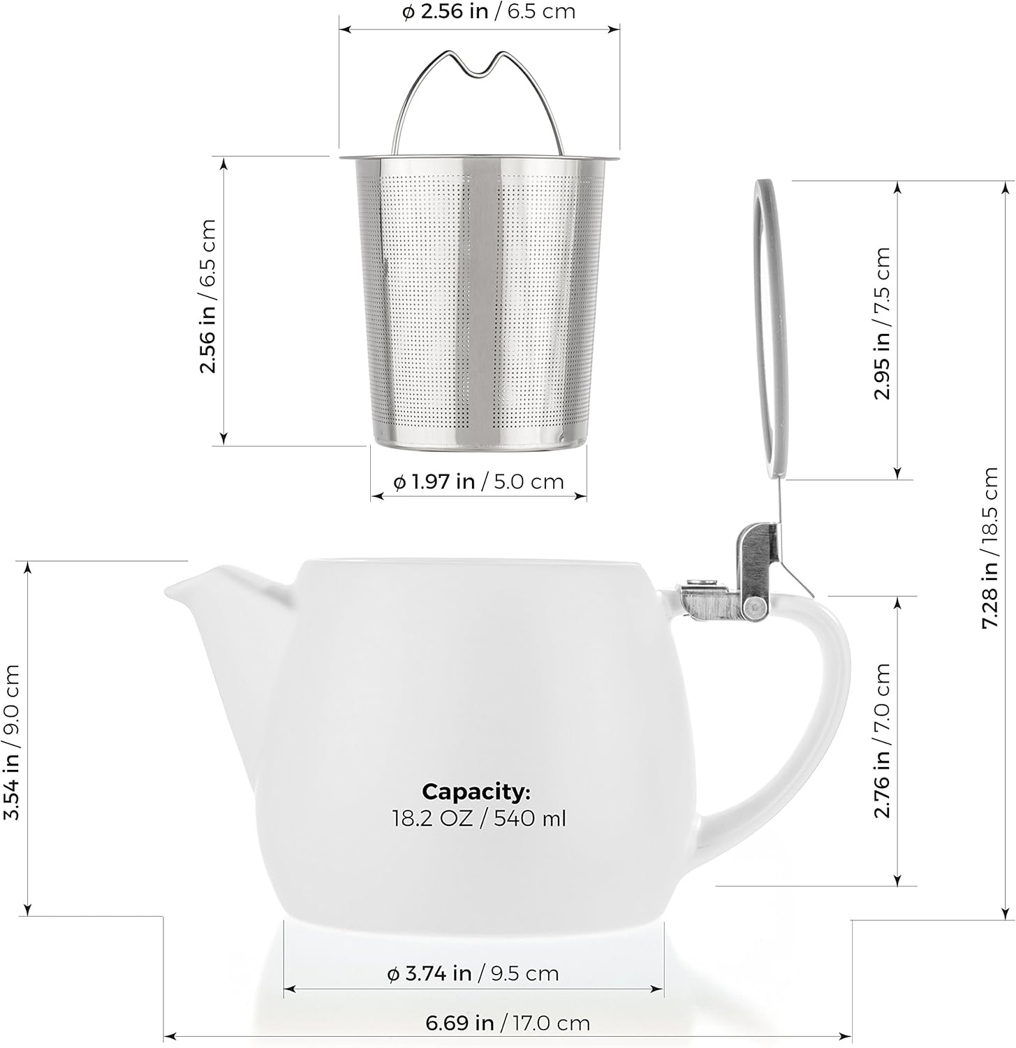 Tealyra - Pluto Porcelain Small Teapot White - 18.2-ounce (1-2 cups) - Matte Finish - Stainless Steel Lid and Extra-Fine Infuser To Brew Loose Leaf Tea - 540ml