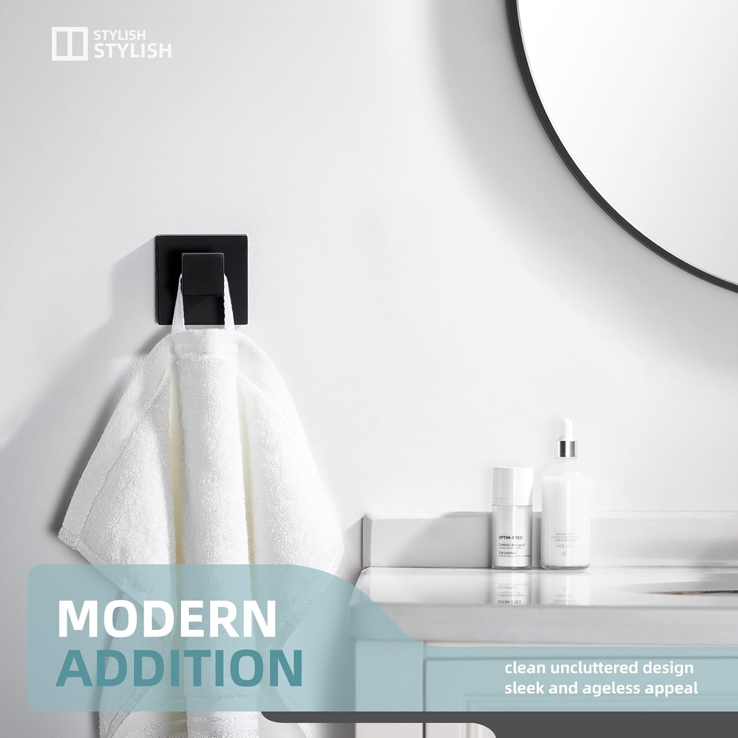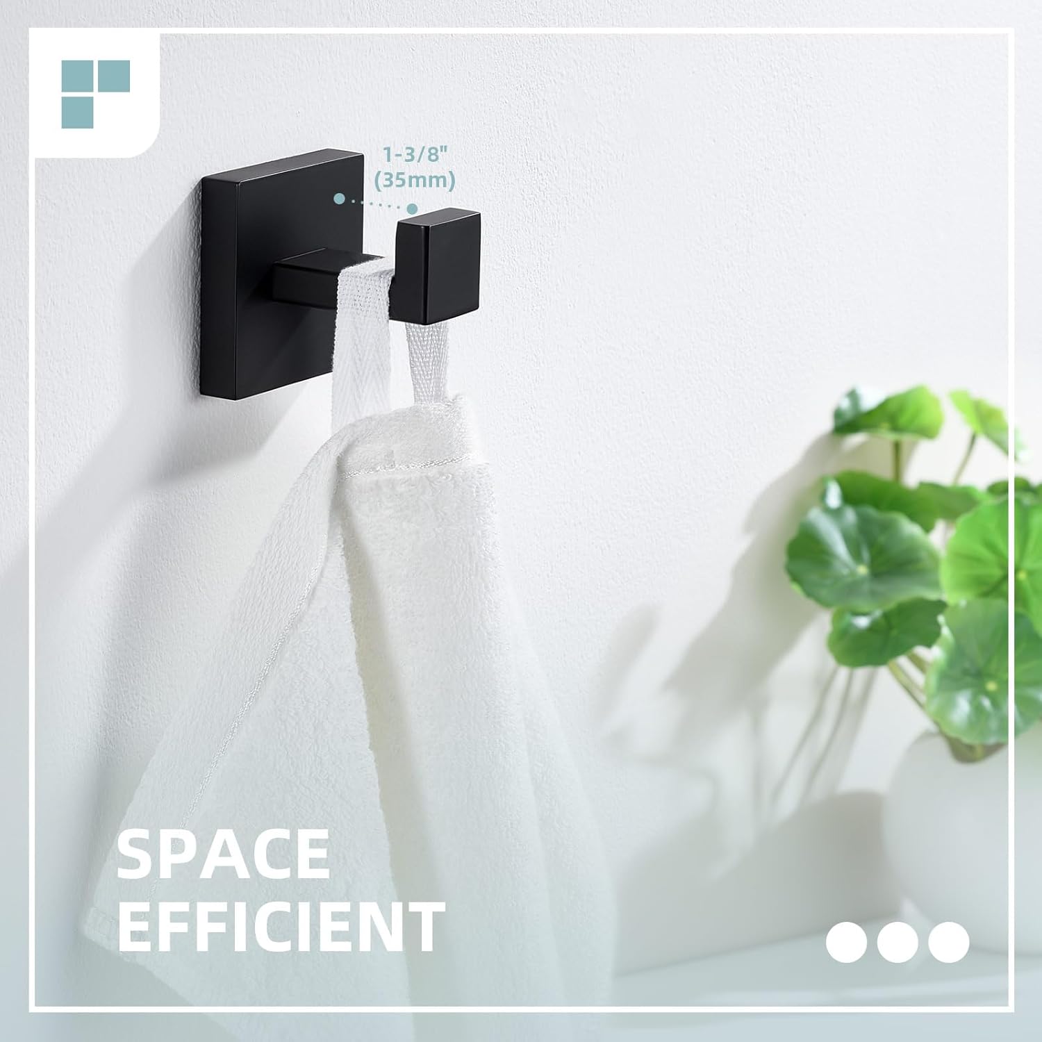 - UTILITY AND GEOMETRIC STYLE: square hook with modern and minimalist design, helps organize robes, towels, loofahs, scarves, hats, purses, brushes, shower caps or other stuff in an uncluttered way.