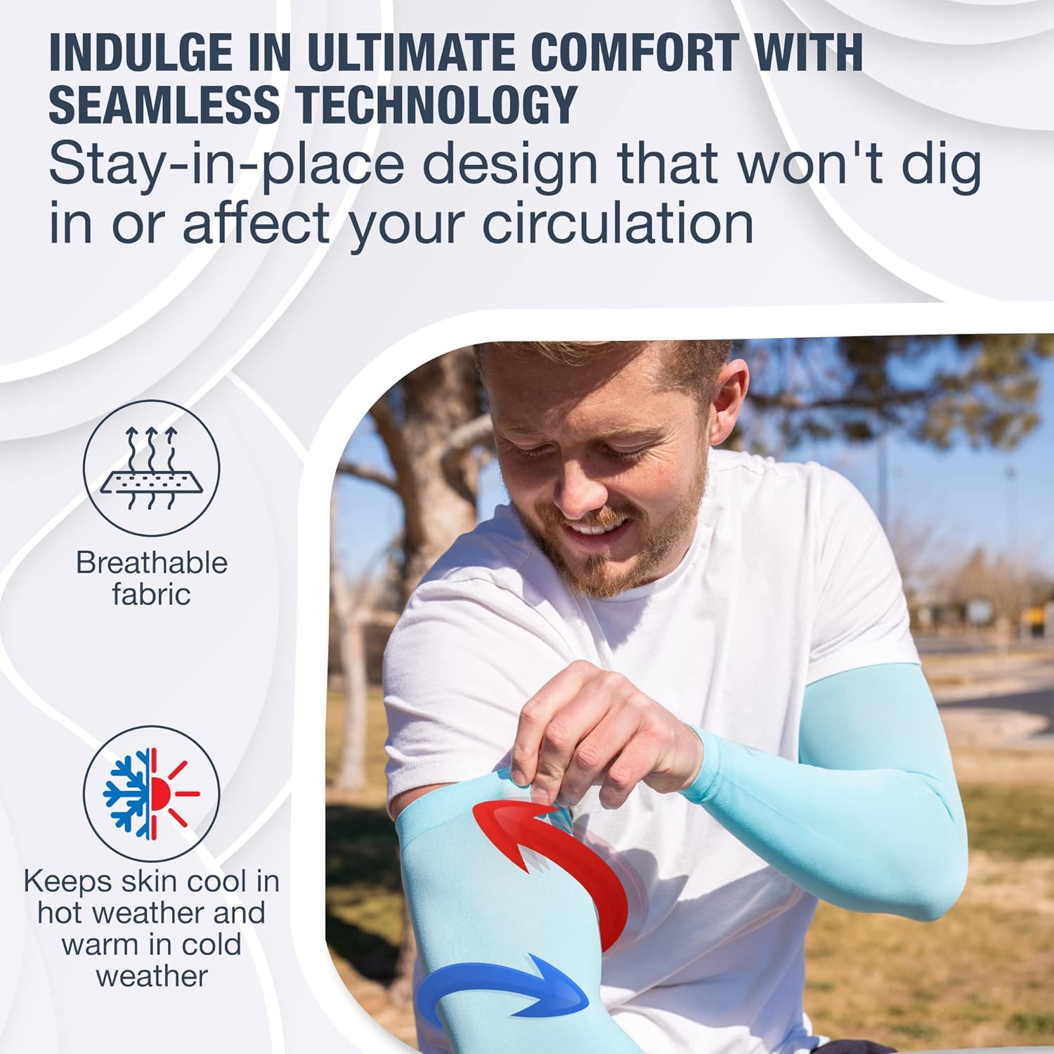- Don’t settle for sleeves for arms that use cheap materials that grow hot & itchy during wear. Our arm cooling sleeves for men & women are constructed of lightweight moisture-wicking fabric that’s highly breathable, dries quickly, and keeps skin cool. Durable and weather-resistant, these zero-chemical, breathable sleeves are made to last through every adventure.