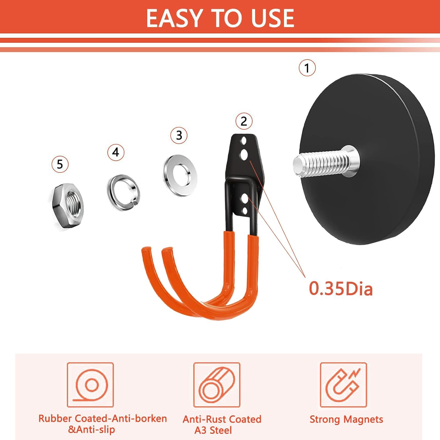 Large Heavy Duty Magnetic Garage Hooks,4 Pack Strong Magnet Hook for Power Drill,Garden Tools,Hose,Pegboard,Garage, Workshop,Magnetic Storage Hooks for Indoor Outdoor Hanging(Orange)