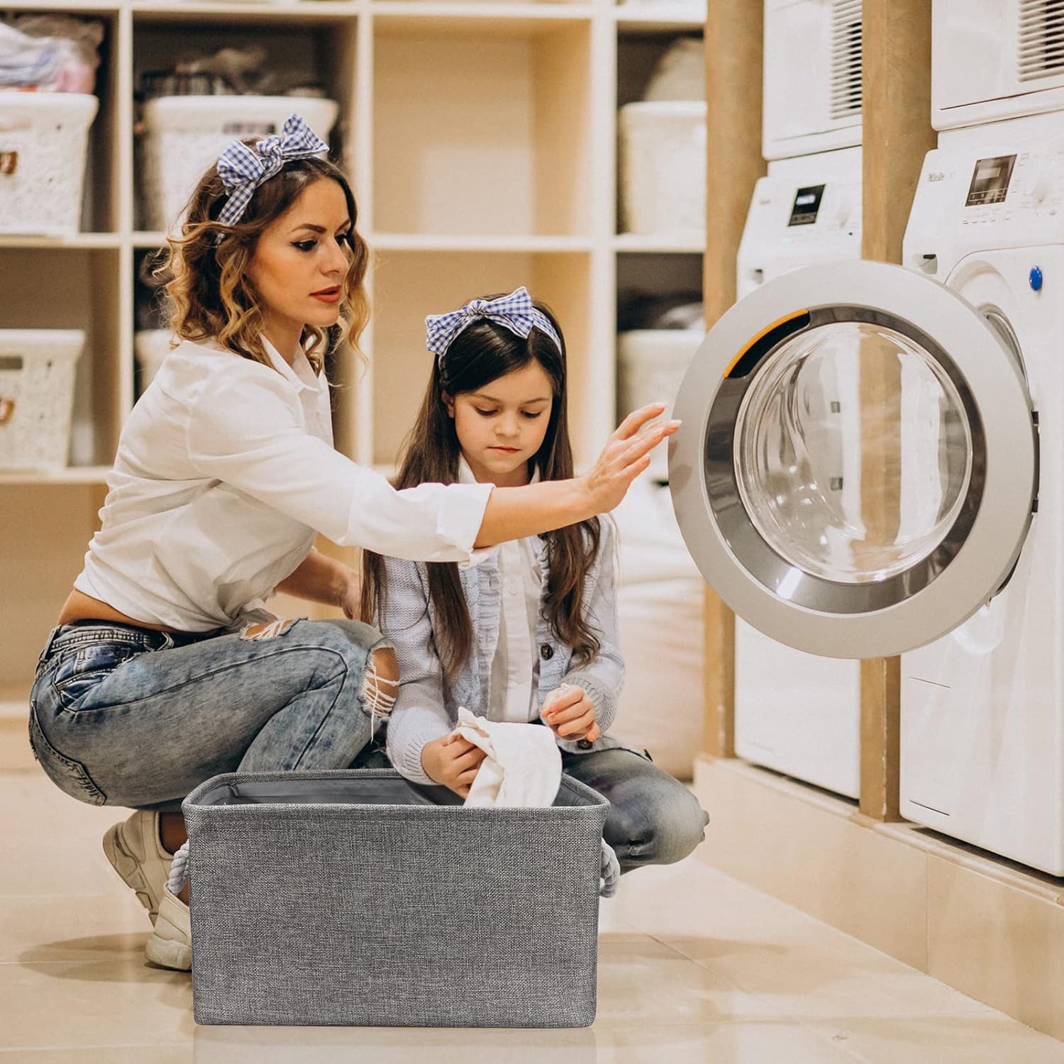 - CARE TIP - Collapsible design for space saving, before use to get the wrinkles out the fabric storage bin: either stuff the fabric storage cubes with blankets and pillows for a few days and the baskets will take the shape , or steam iron them at low-heat setting; dusting the basket with a soft dry cloth is recommended. Spot clean with light soapy water when needed. Not recommended to machine wash for there are metal frame.
