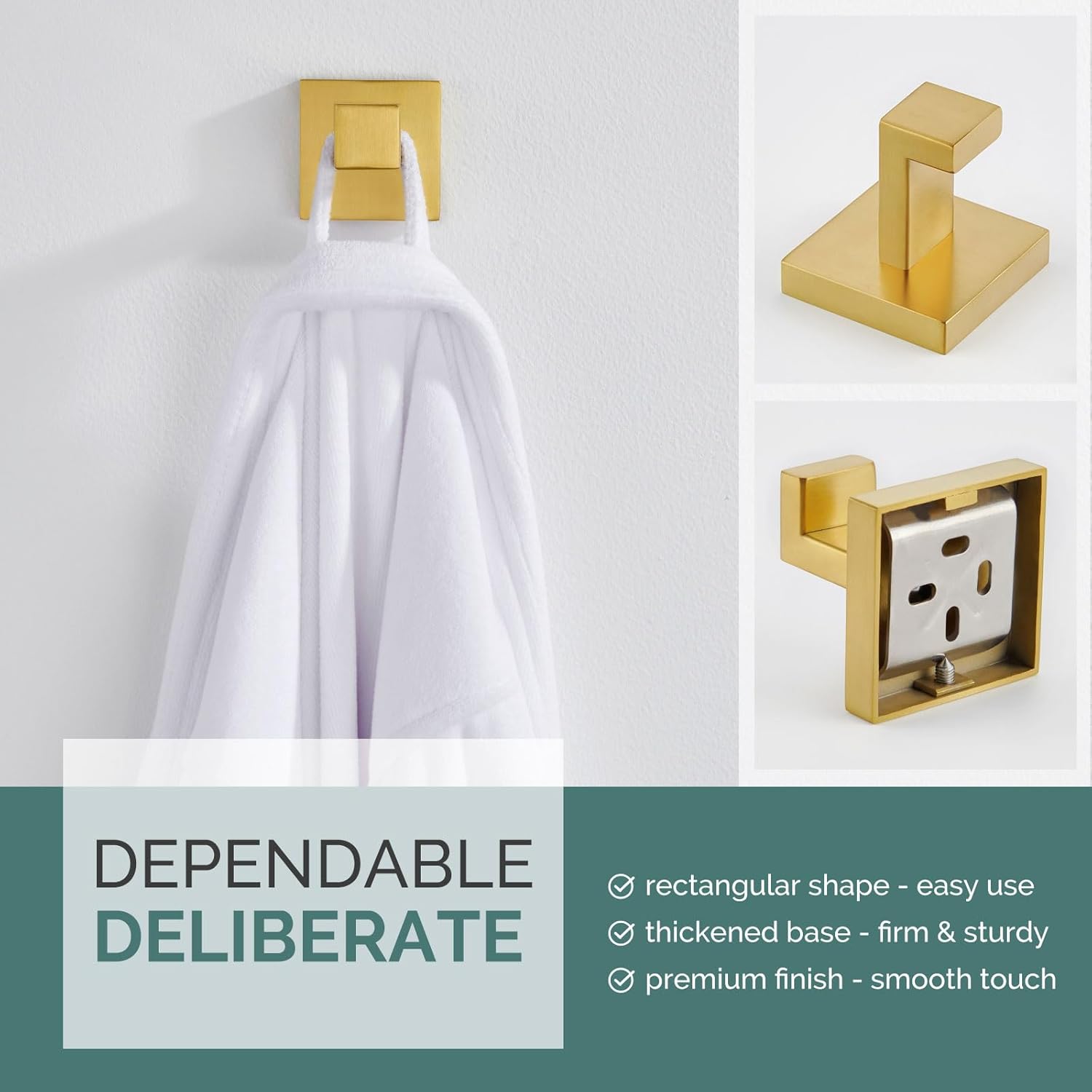 - MODERN ADDITION AND NO FALLING OFF: it's a functional and space saving replacement for the traditional towel bar, ideal for a roomy or small bathroom, nicely hangs items without falling off, simplistic styling with elegant gold finish adds attractive details and timeless appeal to your home.