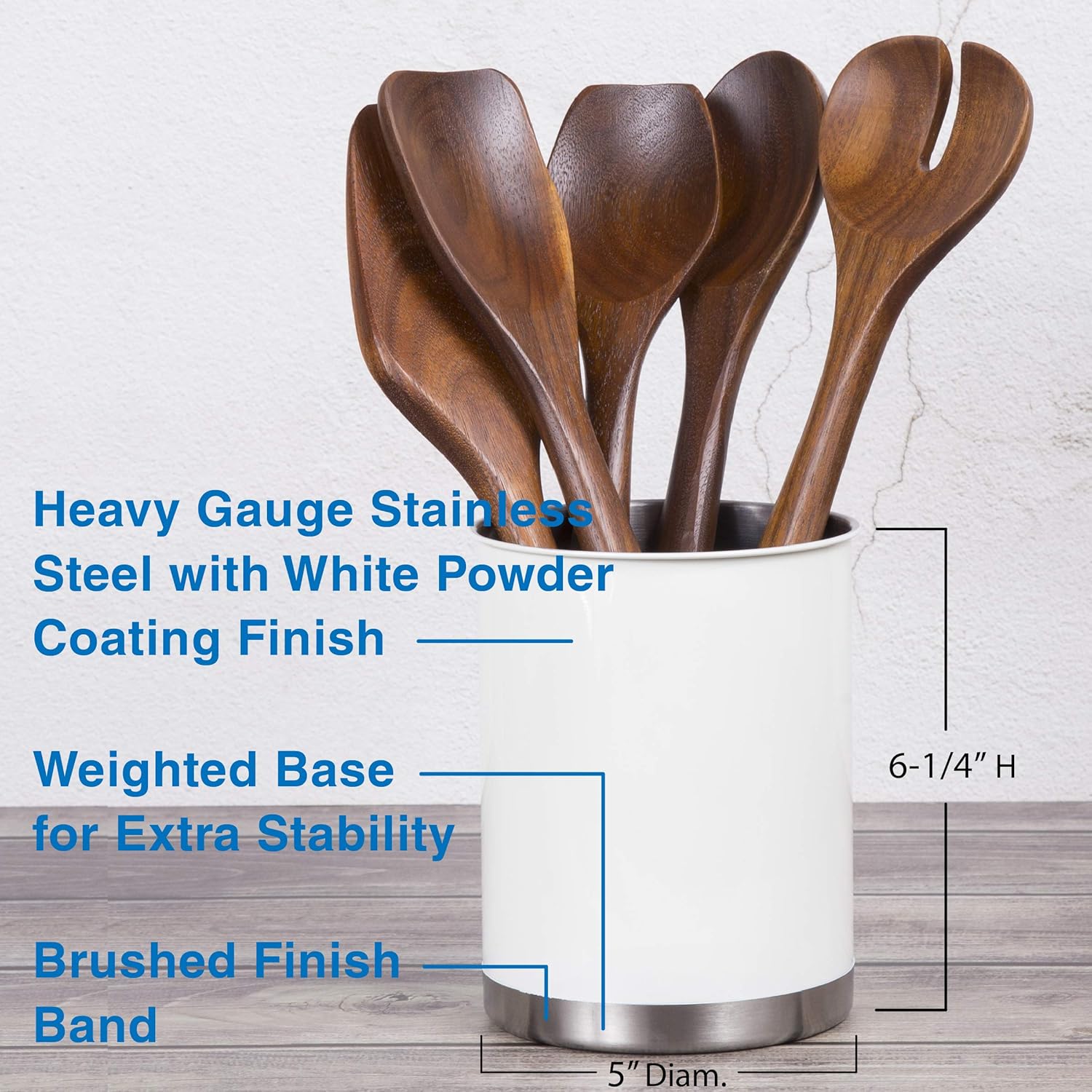 Creative Home Stainless Steel Utensil Holder– 6.3" Large Cooking Tool Organizer for Kitchen Decor and Countertop Storage, Stable Anti-Tip Design, Durable Powder-Coated Finish, White