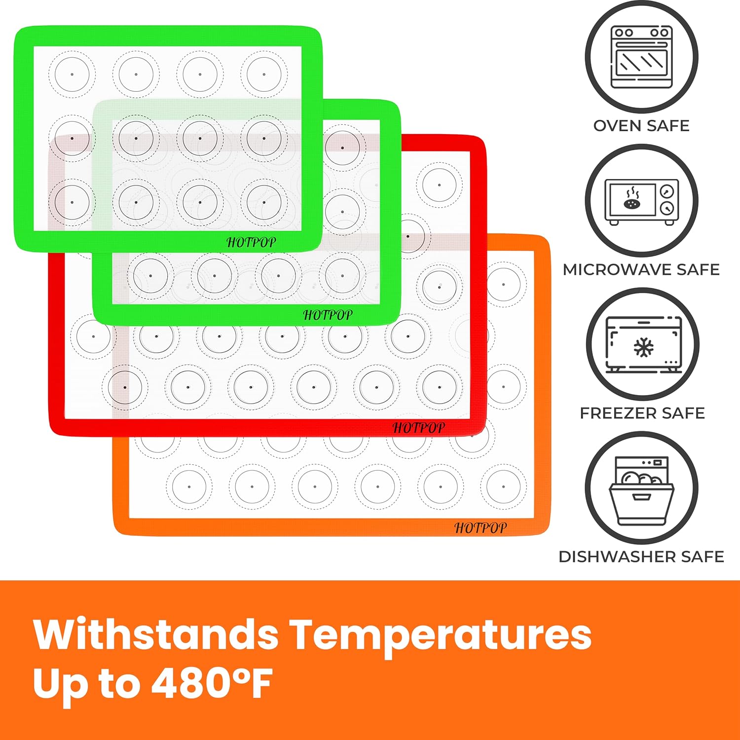 HOTPOP | Reusable Macaron Cookie Sheet, Non Stick Baking Mats, 0.75mm (2 Half Sheets , 2 Quarter Sheets), Set of 4