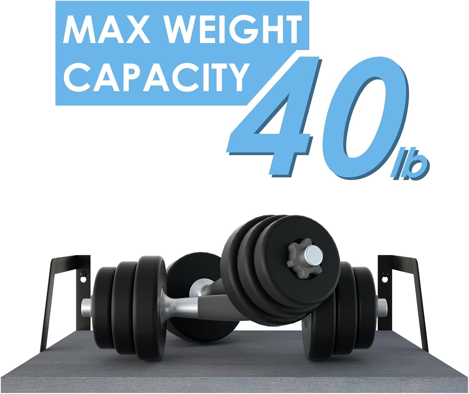 - Large Capacity & Durability: Large floating shelf measuring 16.5''W x 11.8''D x 4.7''H offers more storage space. Shelves made of solid wood and metal are sturdy enough - each hold about 20lb.
