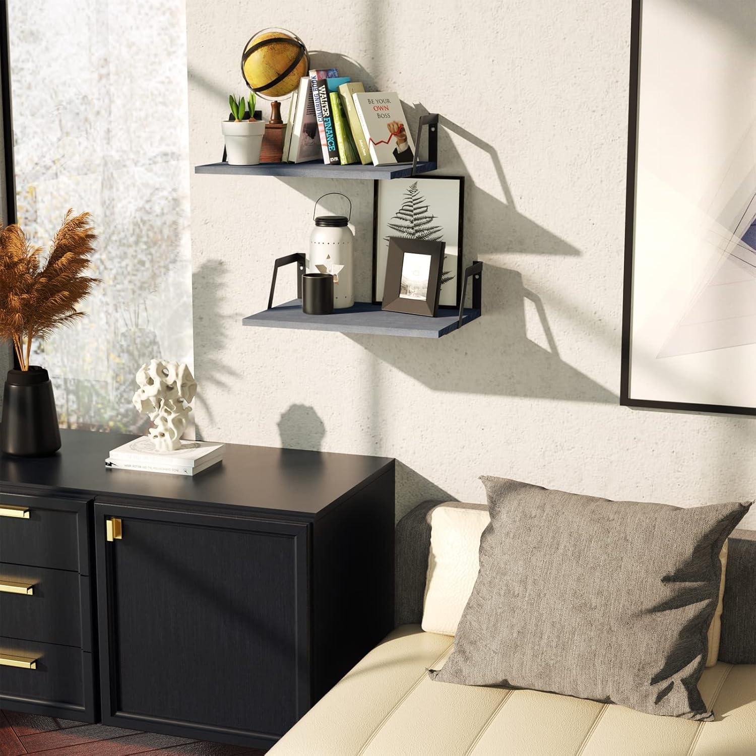 - Excellent Shelving Solution: The floating shelves help you reduce clutter in a small space by organizing your books, family pictures, small plants or other trinkets with the shelves.