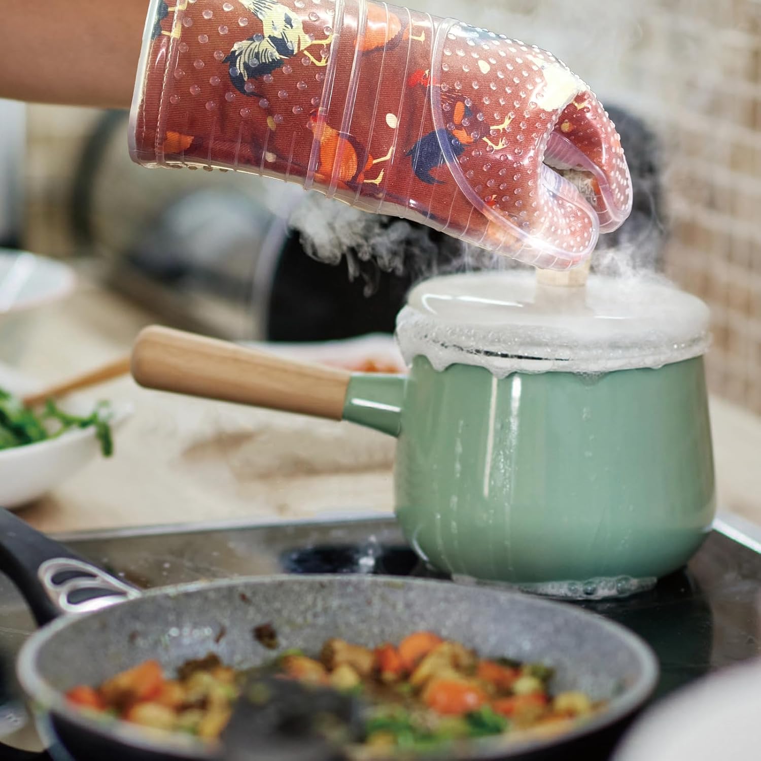RED LMLDETA Oven Mitts Set of 2 with Transparent Clear Silicone Shell and Nice Shell Flower Cotton Lining, Heat Resistant to 500 F Kitchen Oven Gloves Pot Holder for Cooking (Rooster, Oven Mitts)