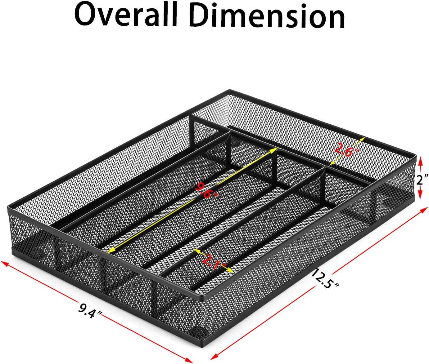 - ă5 Compartmentsă- Easily accommodate your silverware storage needs. The silverware tray will not collect dirt and/or grime like similar plastic trays. Dimensions: 12. 5" X 9. 4" X 2"