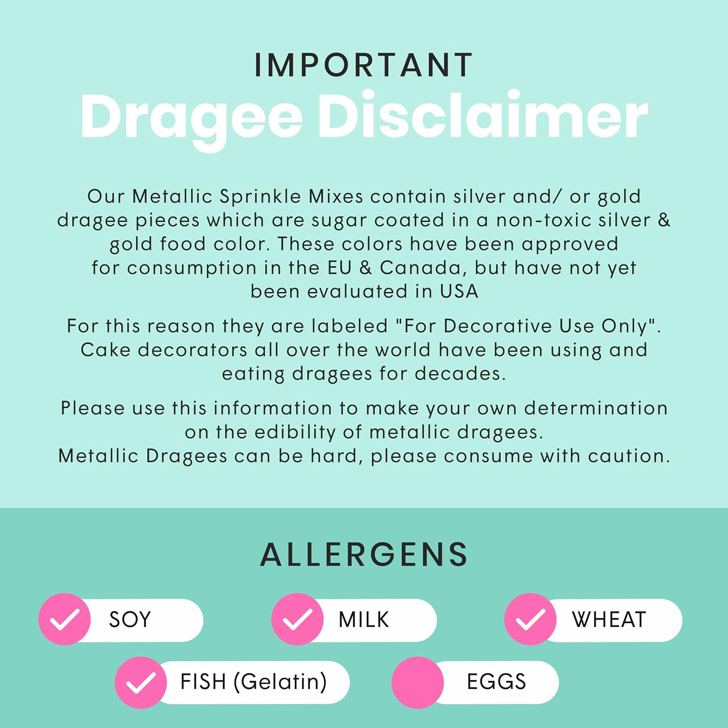 - Metallic Dragees Disclaimer: Silver and gold dragees are commonly used by cake decorators worldwide. While approved for consumption in some regions, they are traditionally labeled as βFor Decorative Use Onlyβ in the U.S. Please use discretion when adding them to your creations