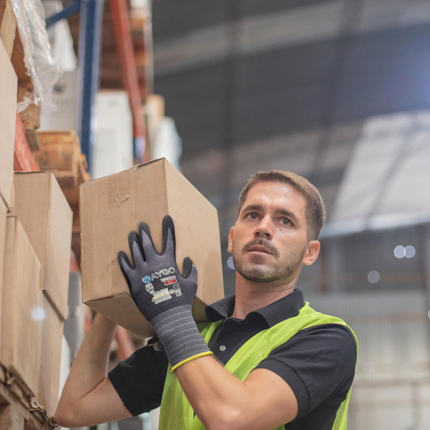 KAYGO Safety Work Gloves MicroFoam Nitrile Coated, 12 Pairs KG18NB,Seamless Knit Nylon Glove for Men and Women, Ideal for Automotive,Warehouse,Construction (X-Large,Gray)