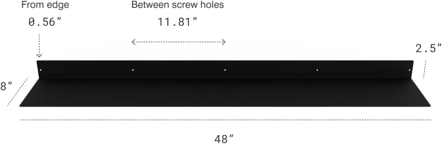 - Size : 48-in X 8-in Powder Coated Matte Black