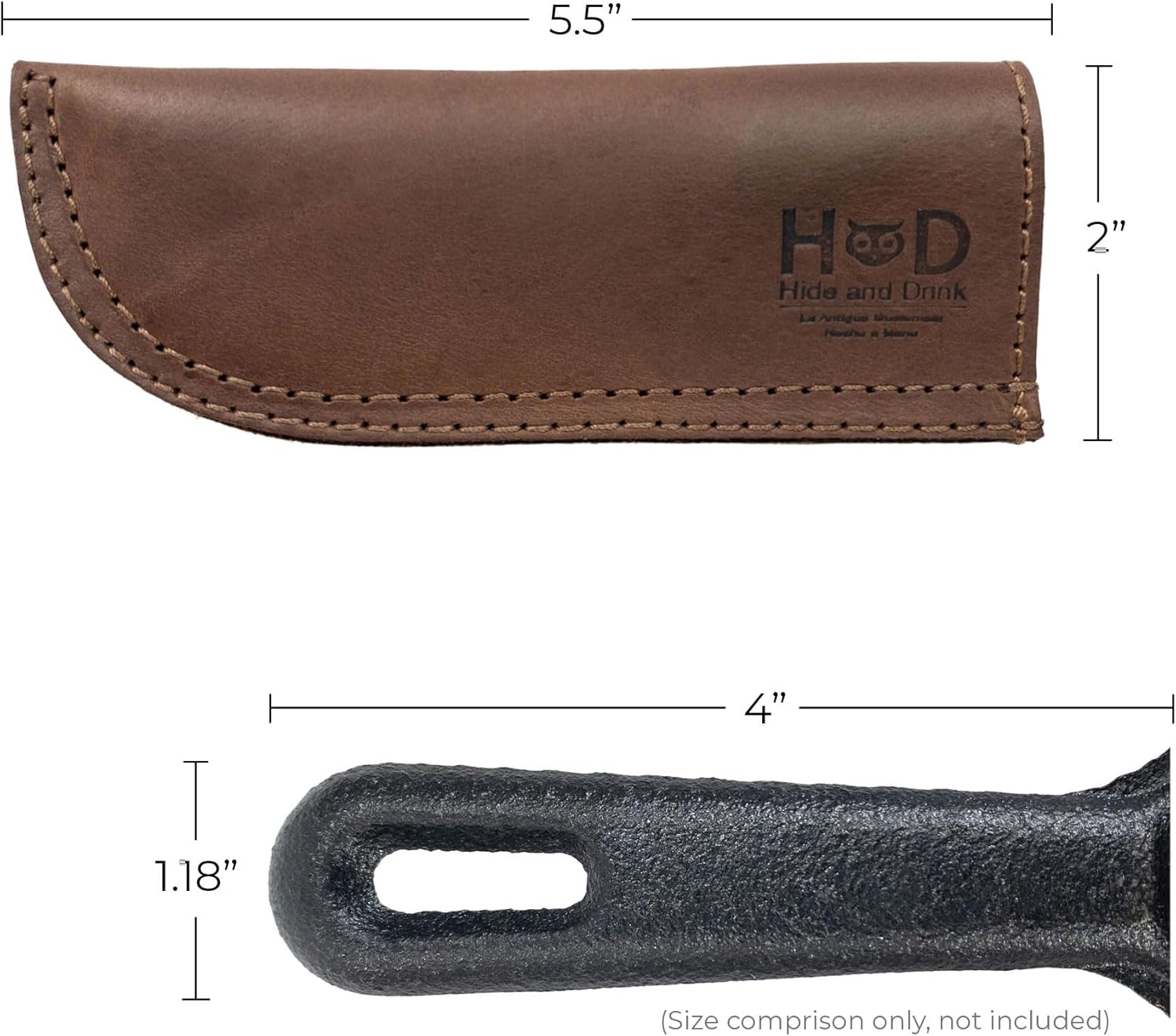 - HANDMADE LEATHER HANDLE HOLDER LINED WITH SOFT SHEEPSKIN FOR EASY INSERTION AND REMOVAL: An indispensable tool for the kitchen, adding some class and style to your Skillet pan while preventing any nasty burns.