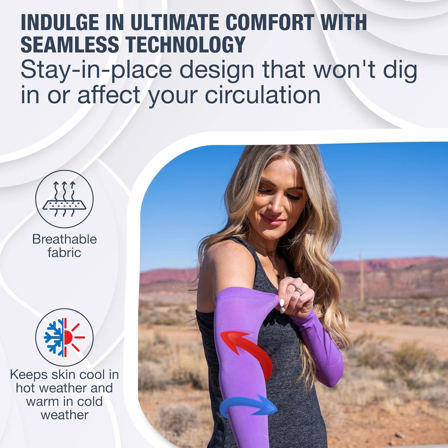 - Superior UPF 50+ premium arm sleeves – our innovative UV sleeves for men and women block over 98% of the sun’s harmful UVA and UVB rays, offering full UPF 50+ coverage. These sun sleeves for men and women are ideal for shielding yourself from the sun on hot days – whether you’re playing golf, basketball, baseball, volleyball, running, or cycling.