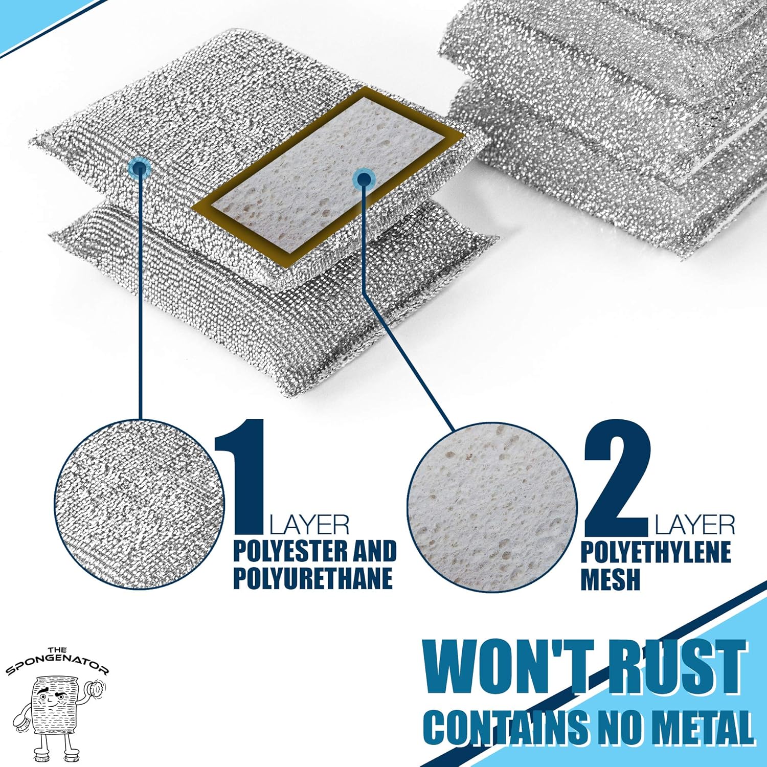 - DURABLE LONG LASTING MATERIALS: Unlike metal scrub sponges that rust easily, these polyester and polyurethane cleaner sponges will stain in excellent condition for up to 3 months (500 uses). Each set includes 6 scrubber pads in silver and gold, so you wonβt have to buy a new pack anytime soon!