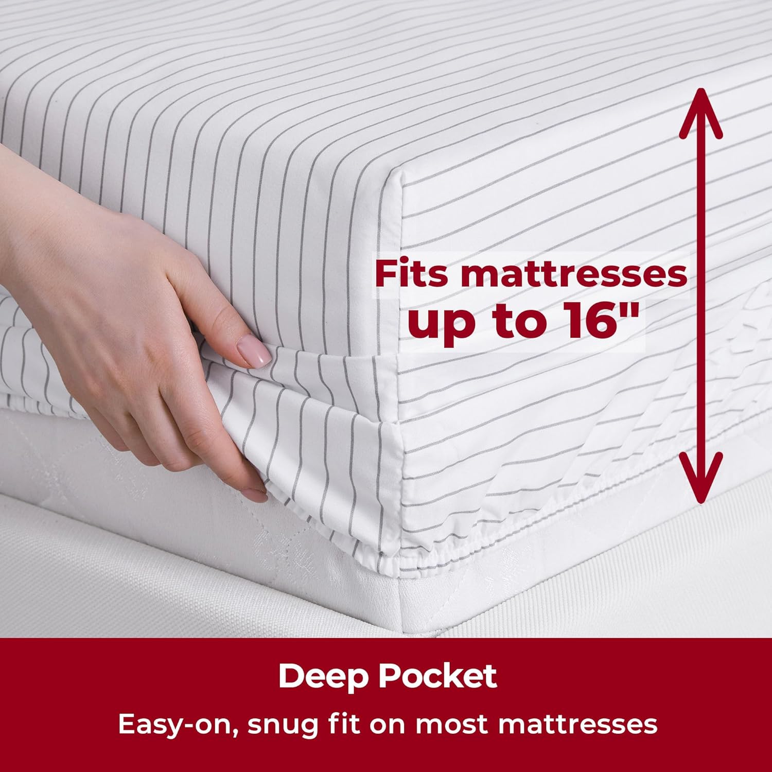- Perfect Fit & Certified Safe - Deep pockets fit mattresses up to 16" deep, making them ideal for memory foam toppers, air mattresses, and more. A sewn-in elastic band ensures a snug, secure fit. OEKO-TEX(R) STANDARD 100 certified (22.HUS.40891, Hohenstein), tested for over 1,000 harmful substances for your peace of mind.