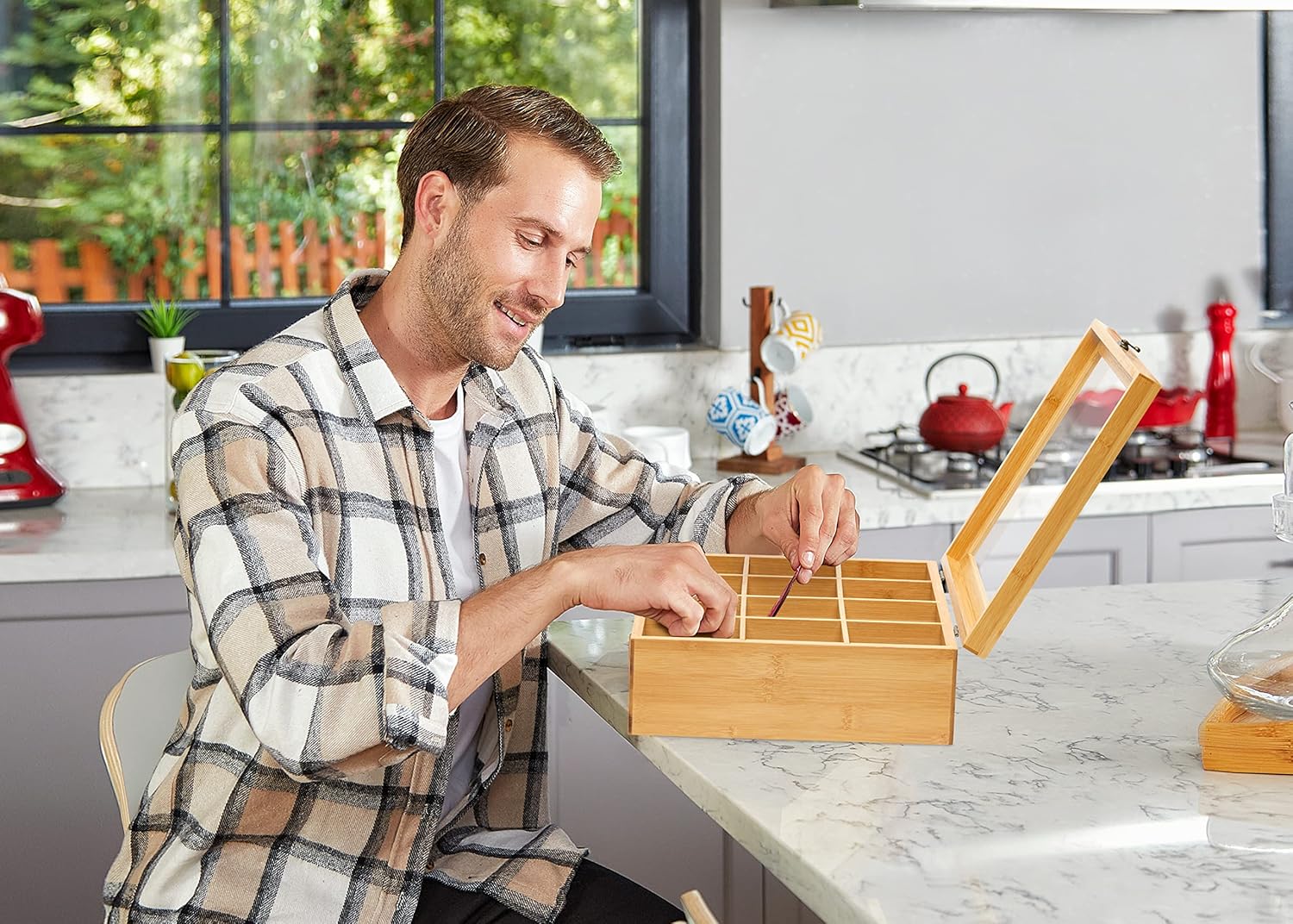 - Big Size: With 12 equally divided compartments, this box can easily hold more than 100 tea bags or any small items.