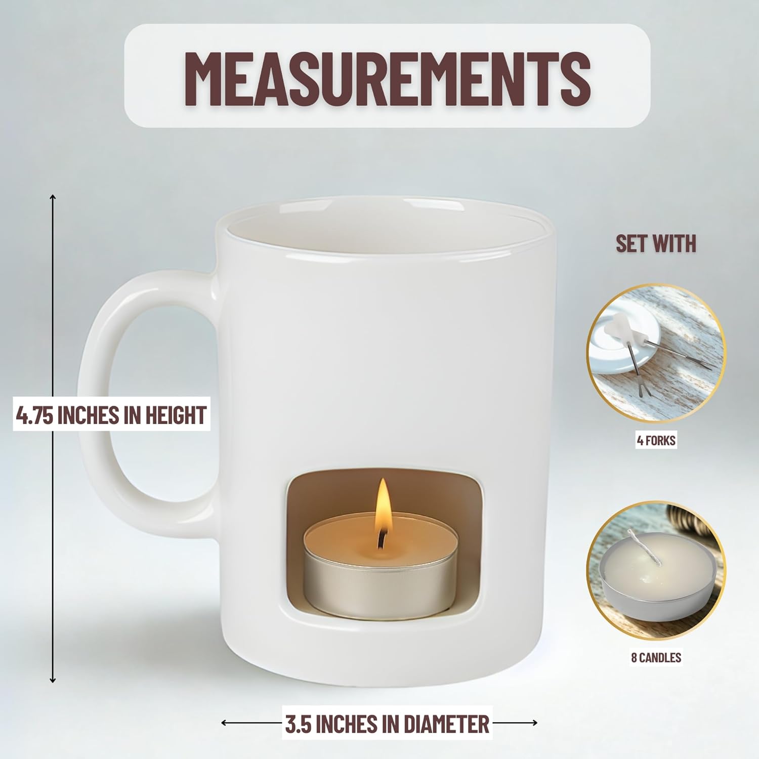 - Deluxe Fondue Maker : Sleek ceramic personal fondue pots feature a clean, minimalistic shape and are available in white or black to complement any decor . No electric cord to get in the way , no large pot to clean. 8 tealight candles are included. They are easily replaced with any tealight for years of use