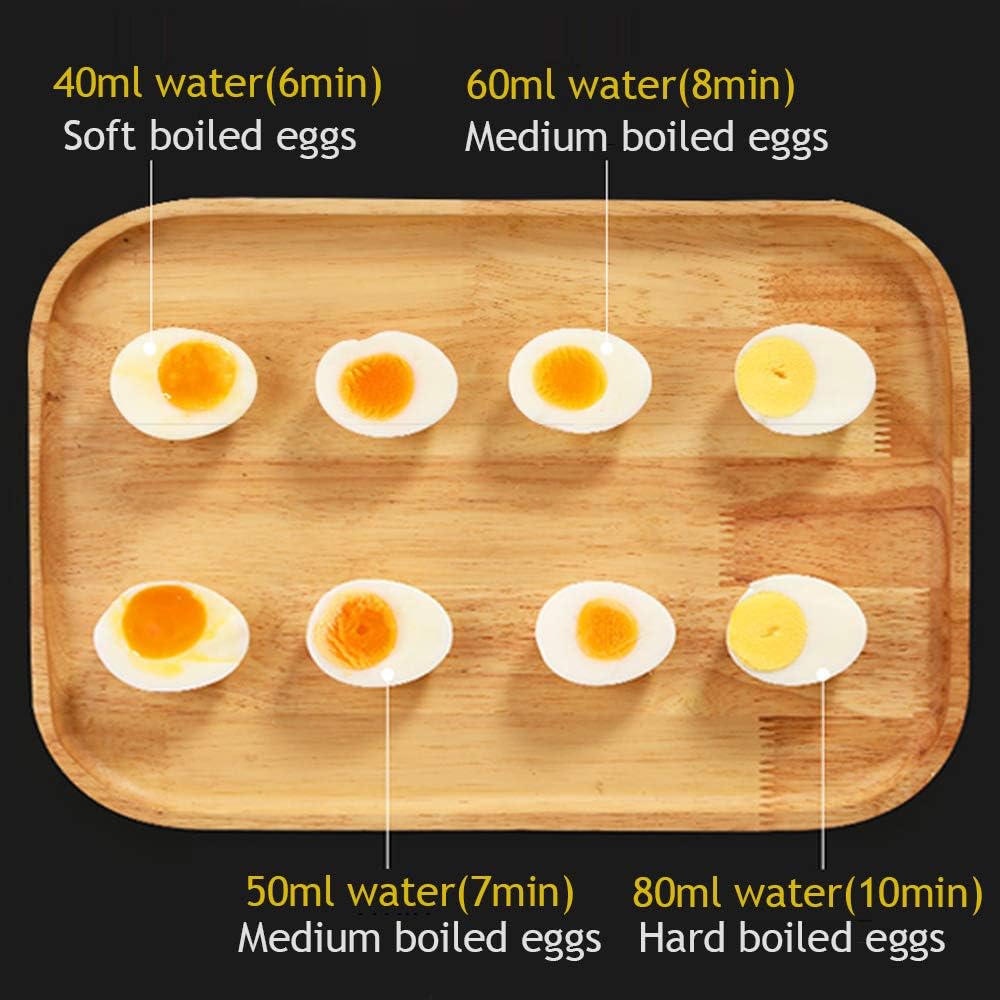 - Multifunctional and Rapid Egg Cooker: Following the instructions, the eggs are always going to be perfectly made. The soft, medium, hard Boiled, Poached, Steamed Eggs, Vegetables and Dumplings can be made within a few minutes. Tips: the measuring cup tells you how much water to put in for whatever type of egg you want to make. Just enjoy your delicious and nutritious breakfast!
