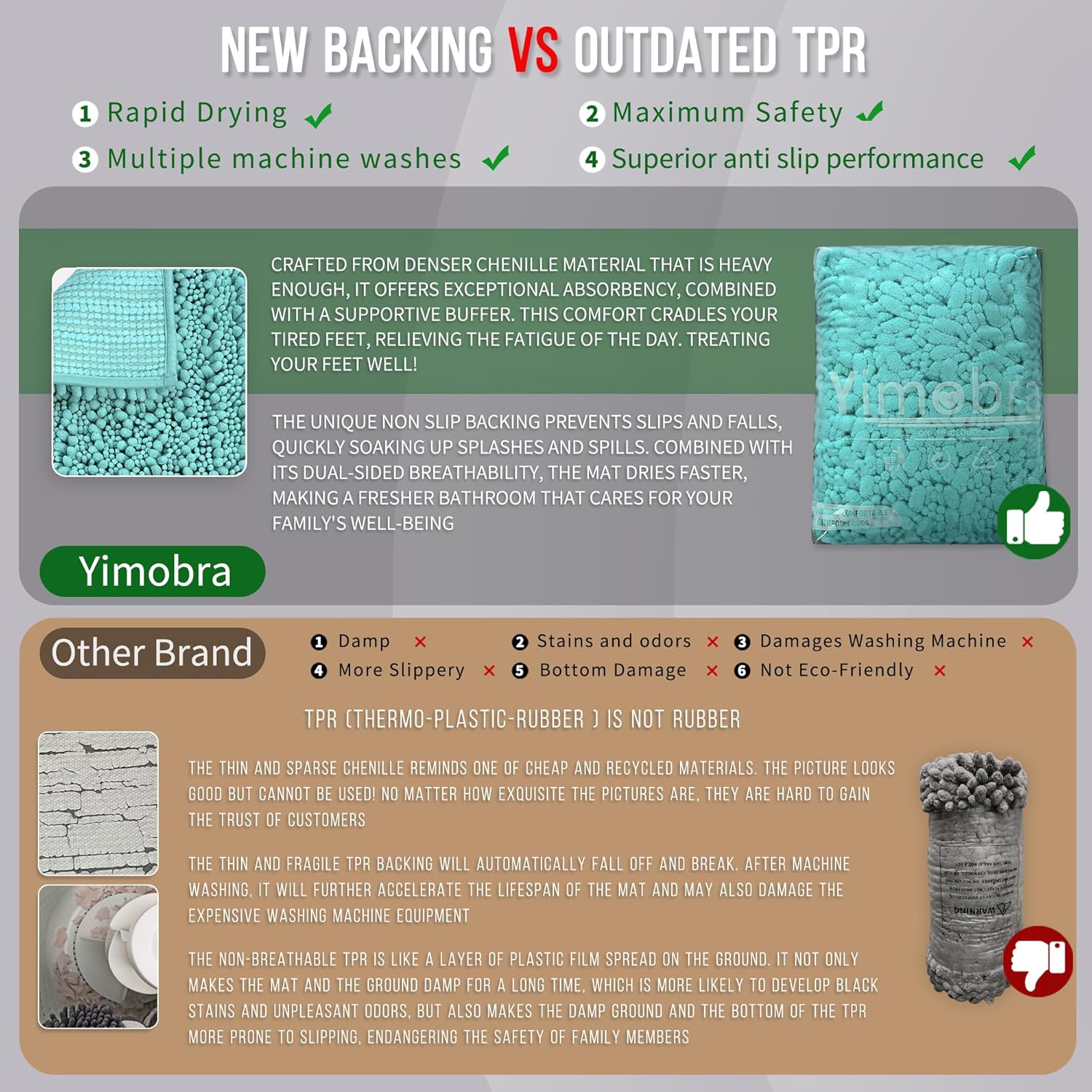 - How Is The Feeling Of Walking On The Clouds? It's Yimobra Luxury Chenille Bathroom Mats! - Thicker and better constructed chenille bathroom mat, provides comfortable underfoot support is just like walking on the soft clouds. We have prepared many colors schemes for you, choosing the one of your favorite colors to match the home decoration perfectly. Tips: Due to the lighting and monitor settings, the color of pictures will be vary