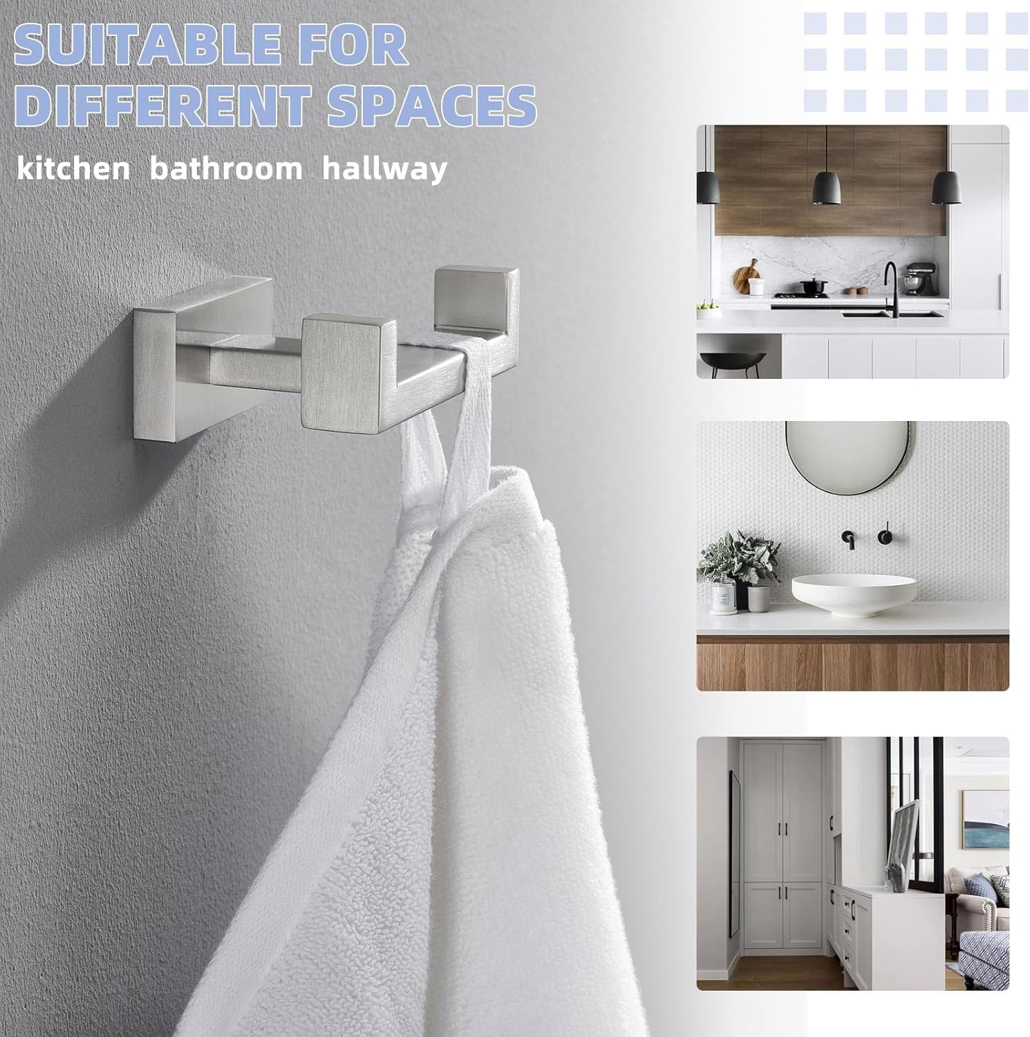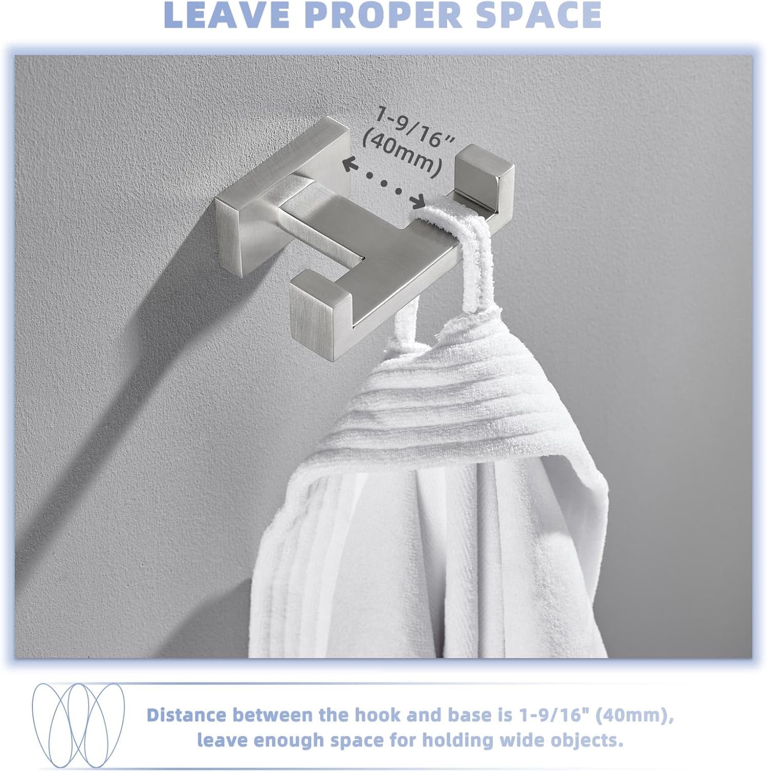 Suyar Double Towel Hook Brushed Nickel, SUS 304 Stainless Steel Bathroom Towel Holder, Coat Robe Wall Hook