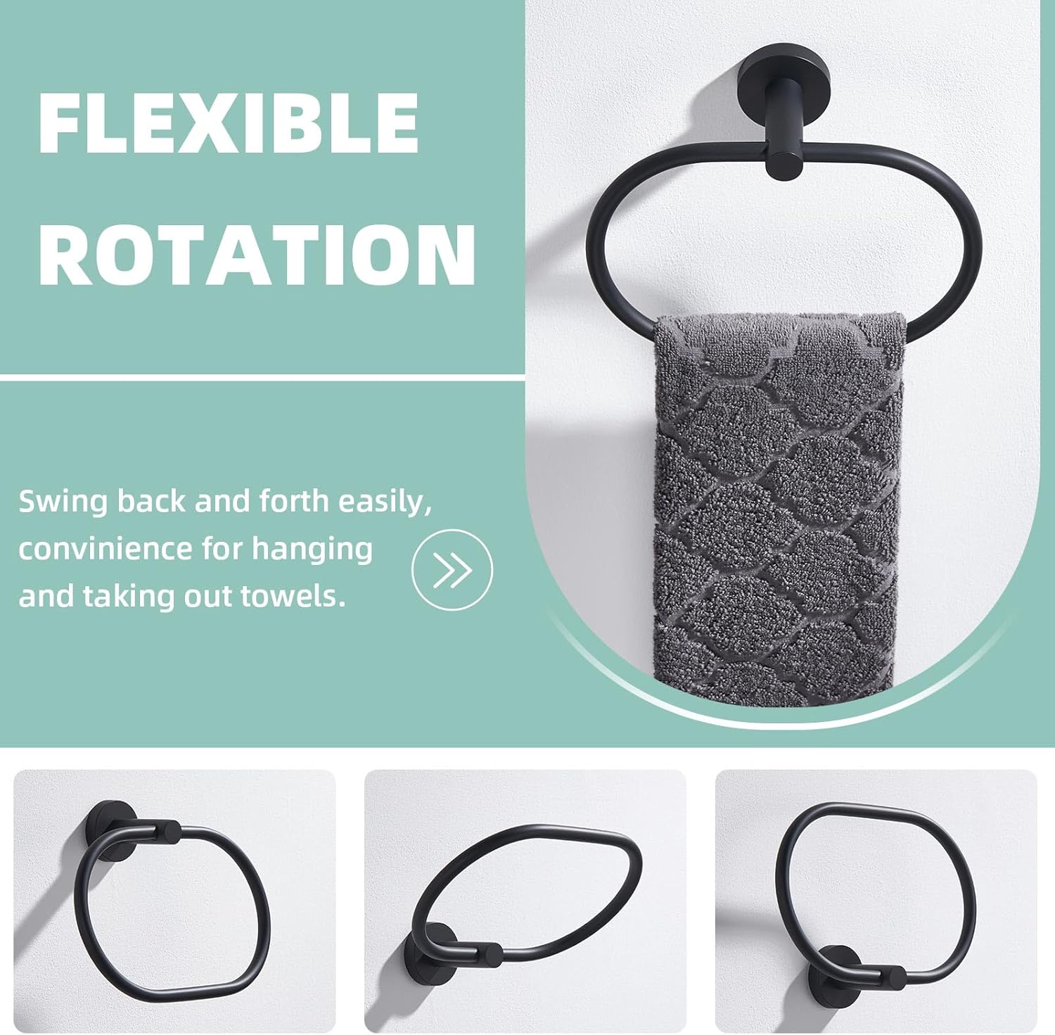 - CONSIDERATE TOWEL ORGANIZER: gasket is added inside the hinge to assist in smooth rotation without squeaking, increase firmness and reduce metal wear. Smooth edges prevent scratching hands, care for family safety