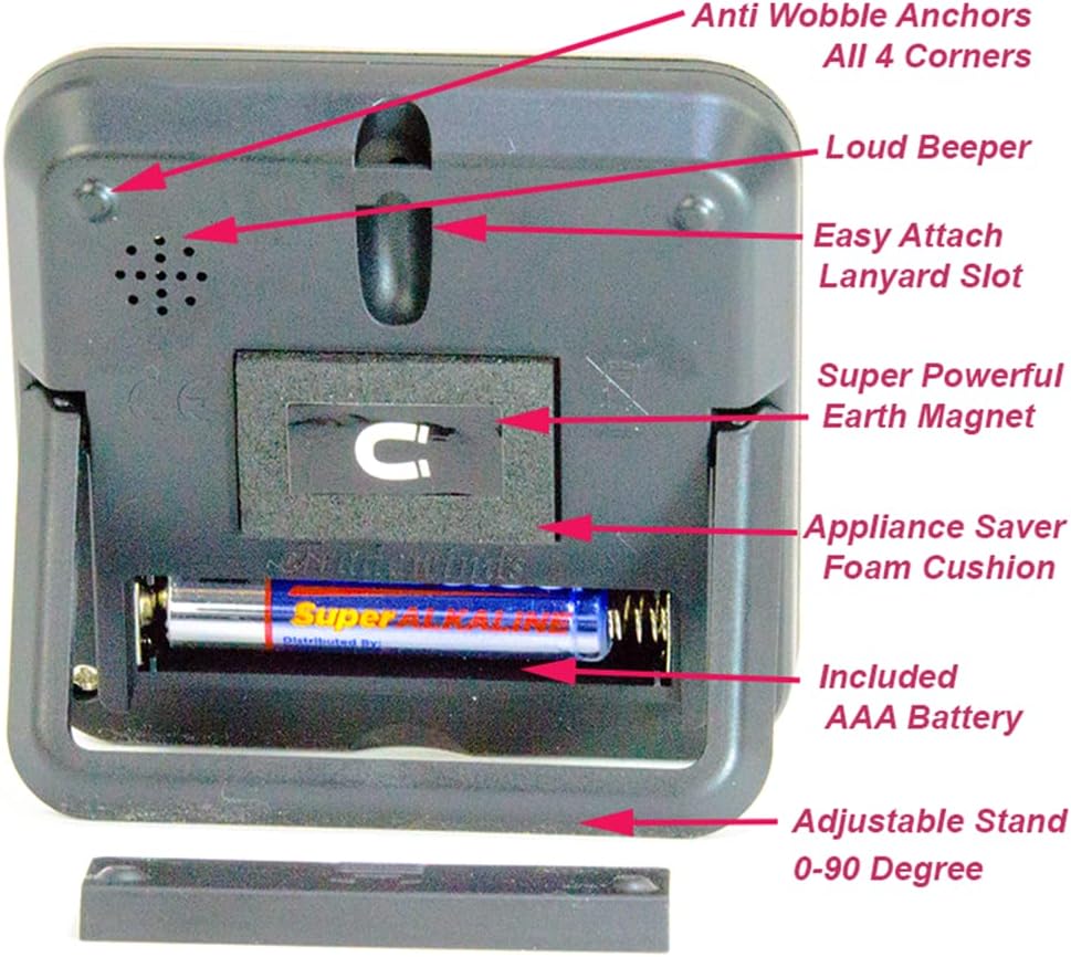 - Strongest Timer Magnet Listed Anywhere: Powerful Neodymium earth magnet & anti-scratch appliance saver foam. Our timers won't slide down your fridge or scratch appliances. Anti-Wobble Stabilizing Anchor Points: Designed on all 4 corners eliminating wobble, pivot, or movement when buttons are pressed while magnet secured. What good is a timer you can’t use while attached? This timer won't pop off your range hood and backflip into your boiling soup because you hit the off button. "No soup fer yu"
